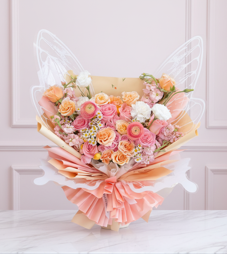 The poetic harmony of petals and wings, evoking a sense of refined romance