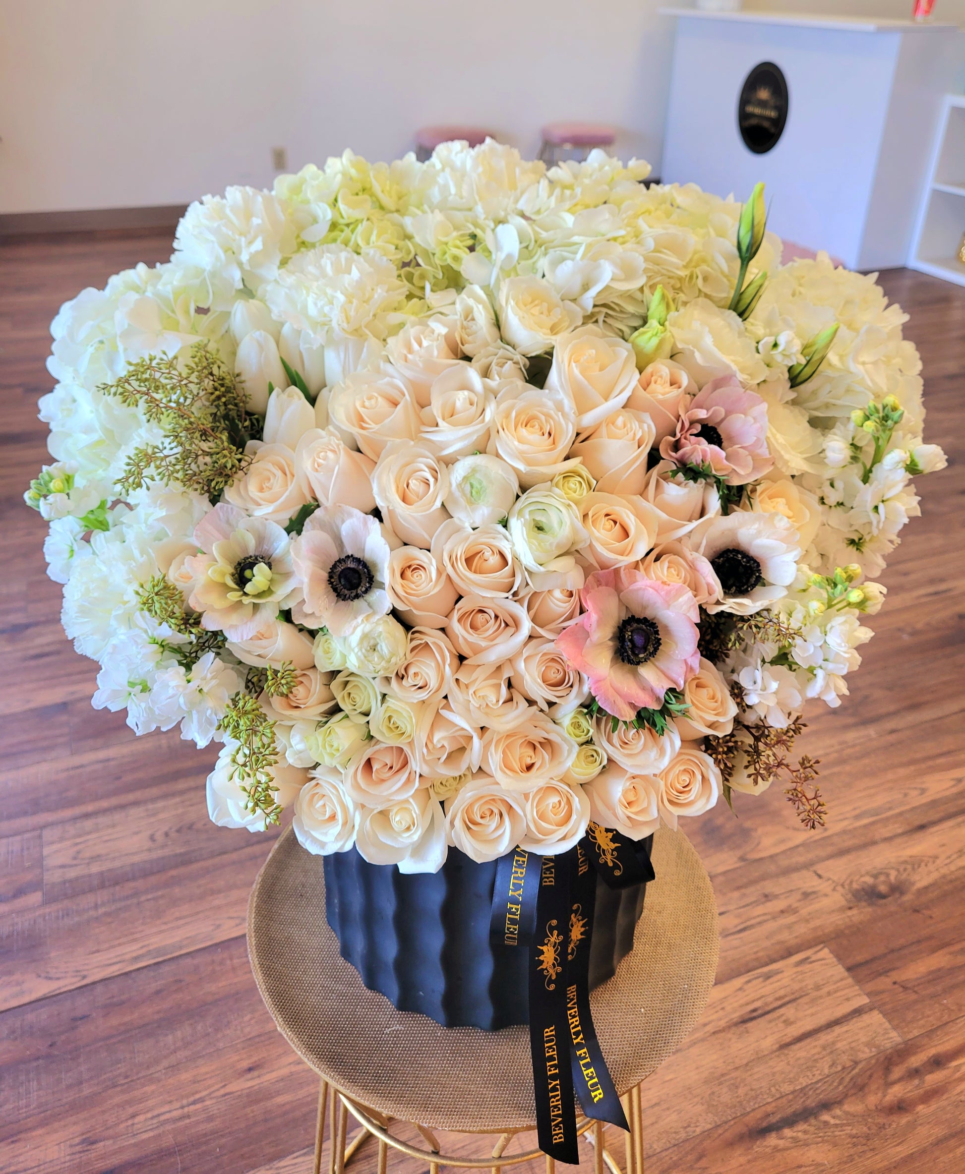 Although the actual flower arrangements may not precisely match the picture, its overall essence will. Occasionally, substitutions of flowers or containers happen due to weather, seasonality and market conditions which may affect availability. In this case, we will ensure that the style, theme and color scheme of your arrangement is preserved and will only substitute flowers of equal or higher value.