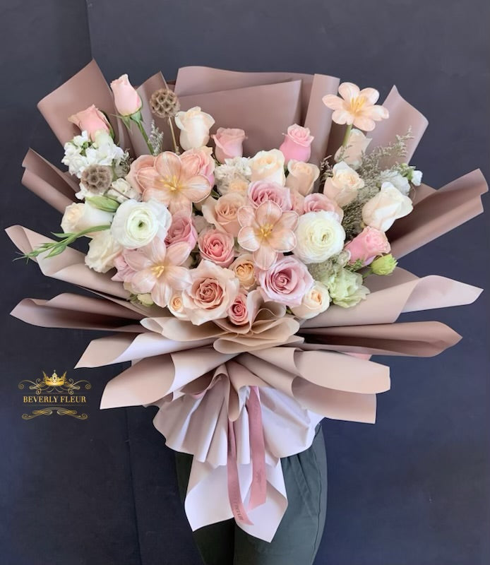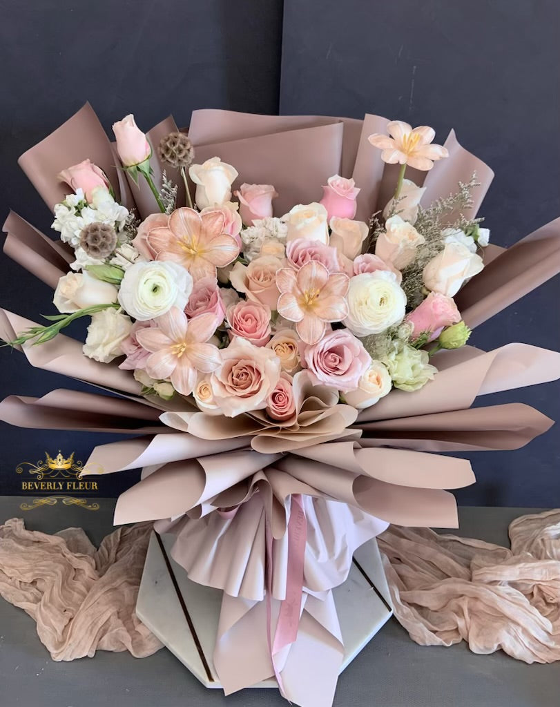Although the actual flower arrangements may not precisely match the picture, its overall essence will. Occasionally, substitutions of flowers or containers happen due to weather, seasonality and market conditions which may affect availability. In this case, we will ensure that the style, theme and color scheme of your arrangement is preserved and will only substitute flowers of equal or higher value.