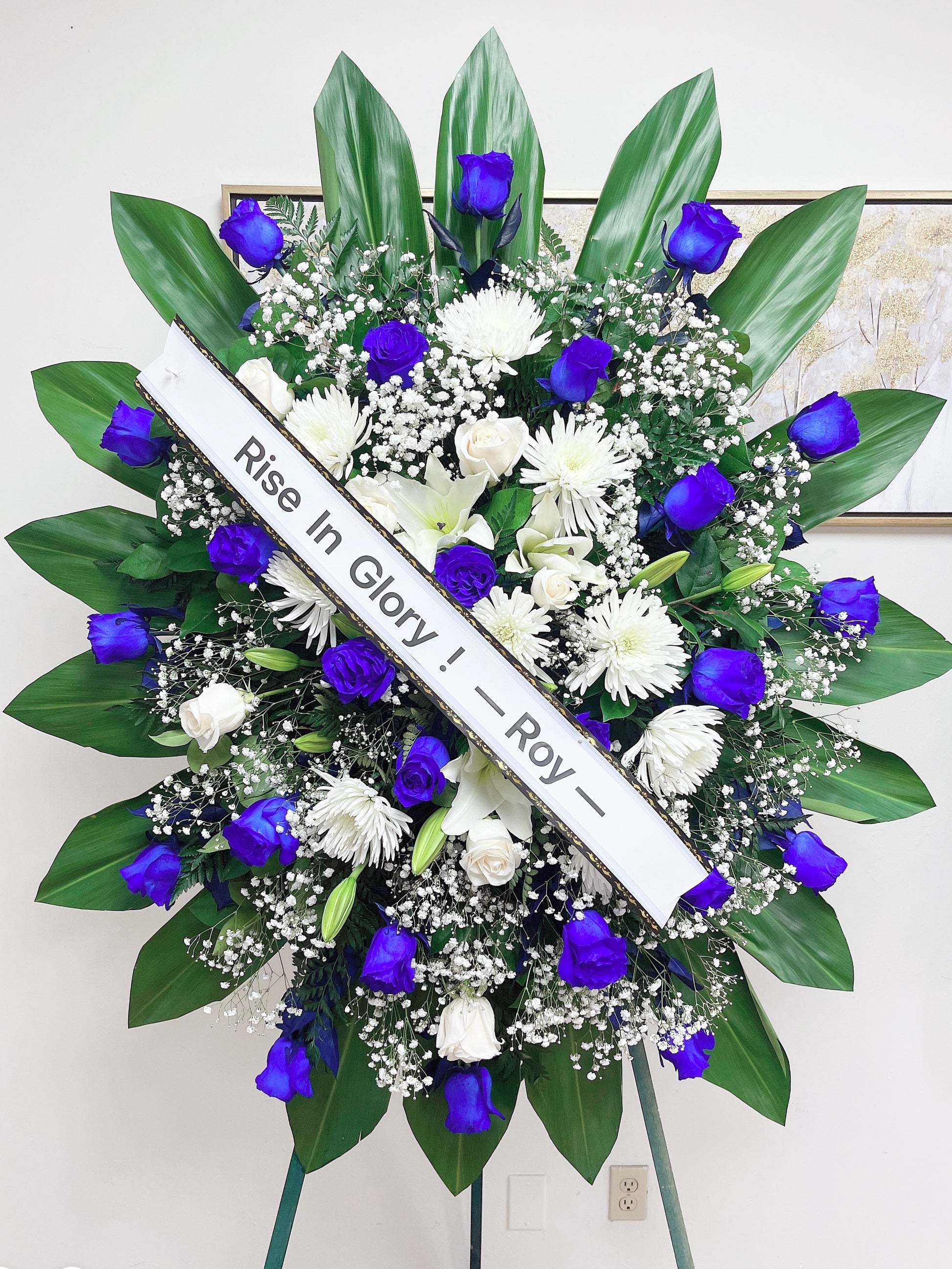 Celebrate a beautiful life with a truly heartfelt gesture. Our elegant standing sympathy spray is arranged with roses, pom pom, baby breath etc. A traditional floral display for the services, it’s a touching way to honor the memory of a loved one while expressing your deepest condolences.