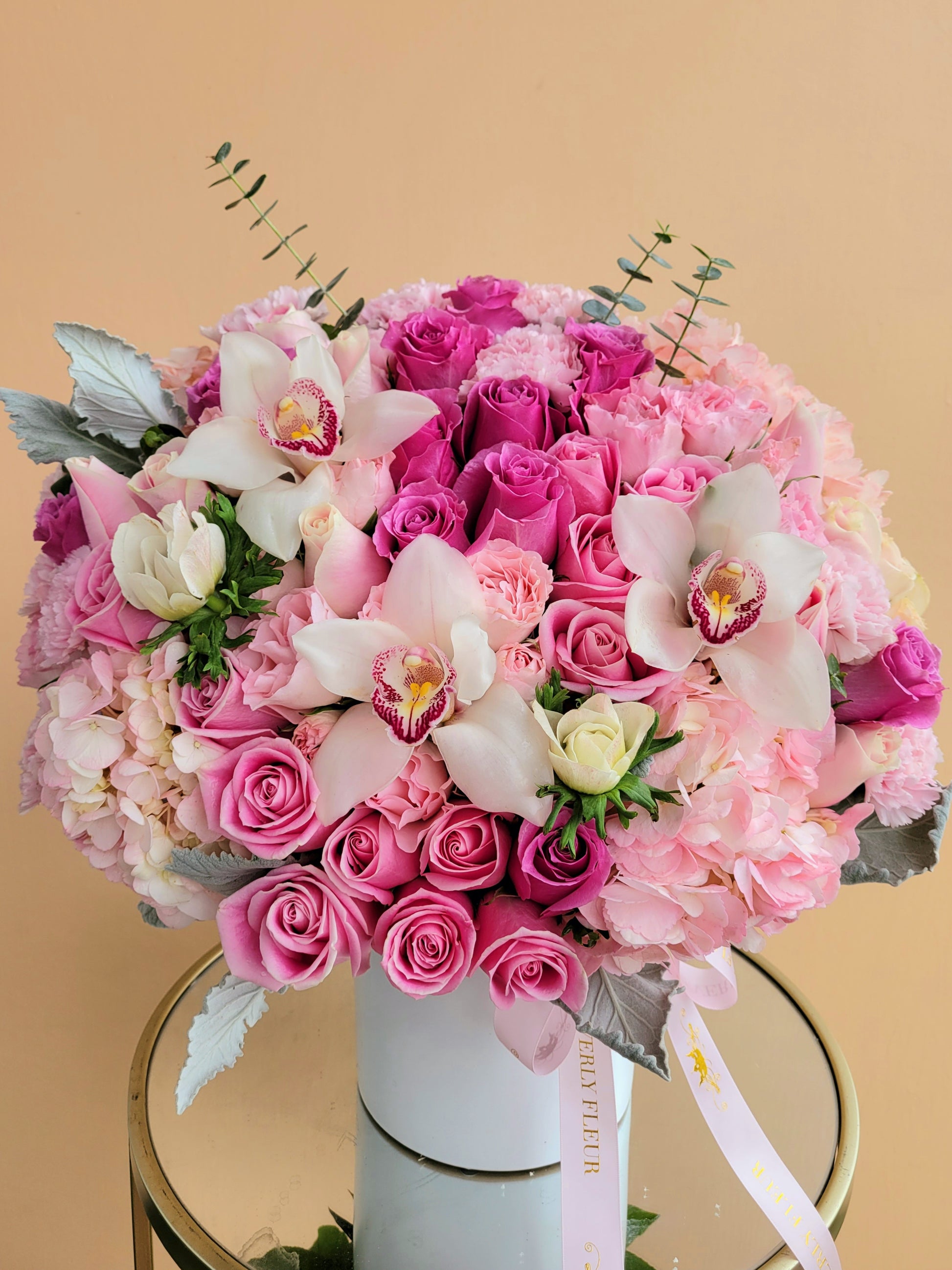Although the actual flower arrangements may not precisely match the picture, its overall essence will. Occasionally, substitutions of flowers or containers happen due to weather, seasonality and market conditions which may affect availability. In this case, we will ensure that the style, theme and color scheme of your arrangement is preserved and will only substitute flowers of equal or higher value.