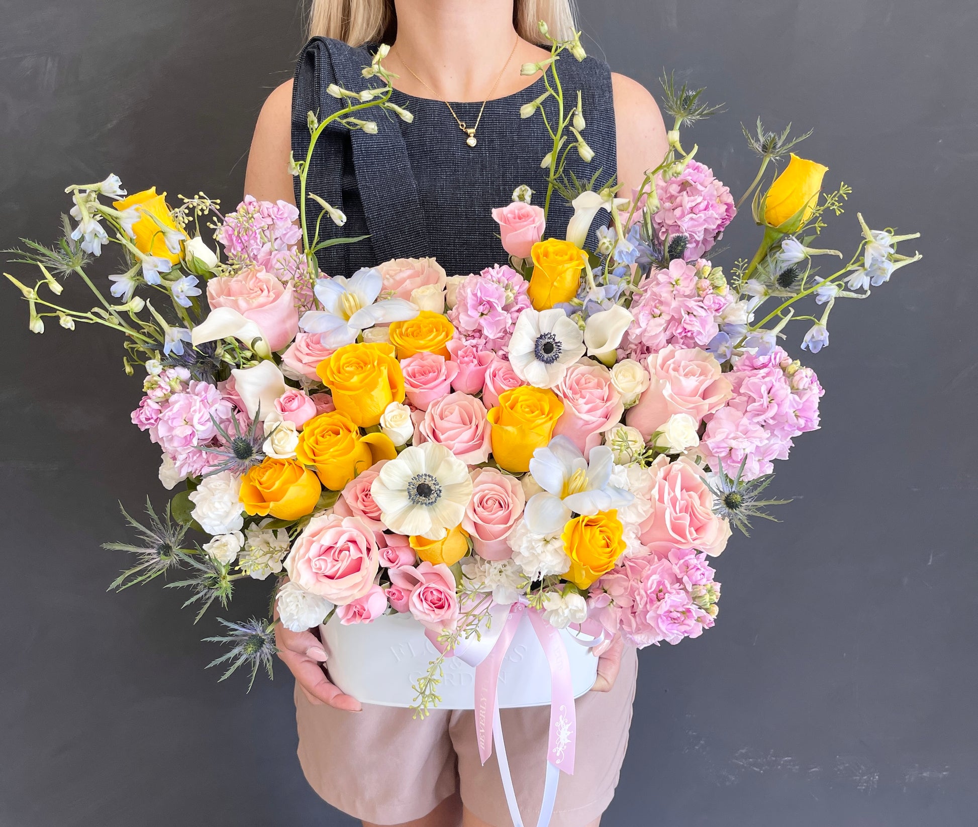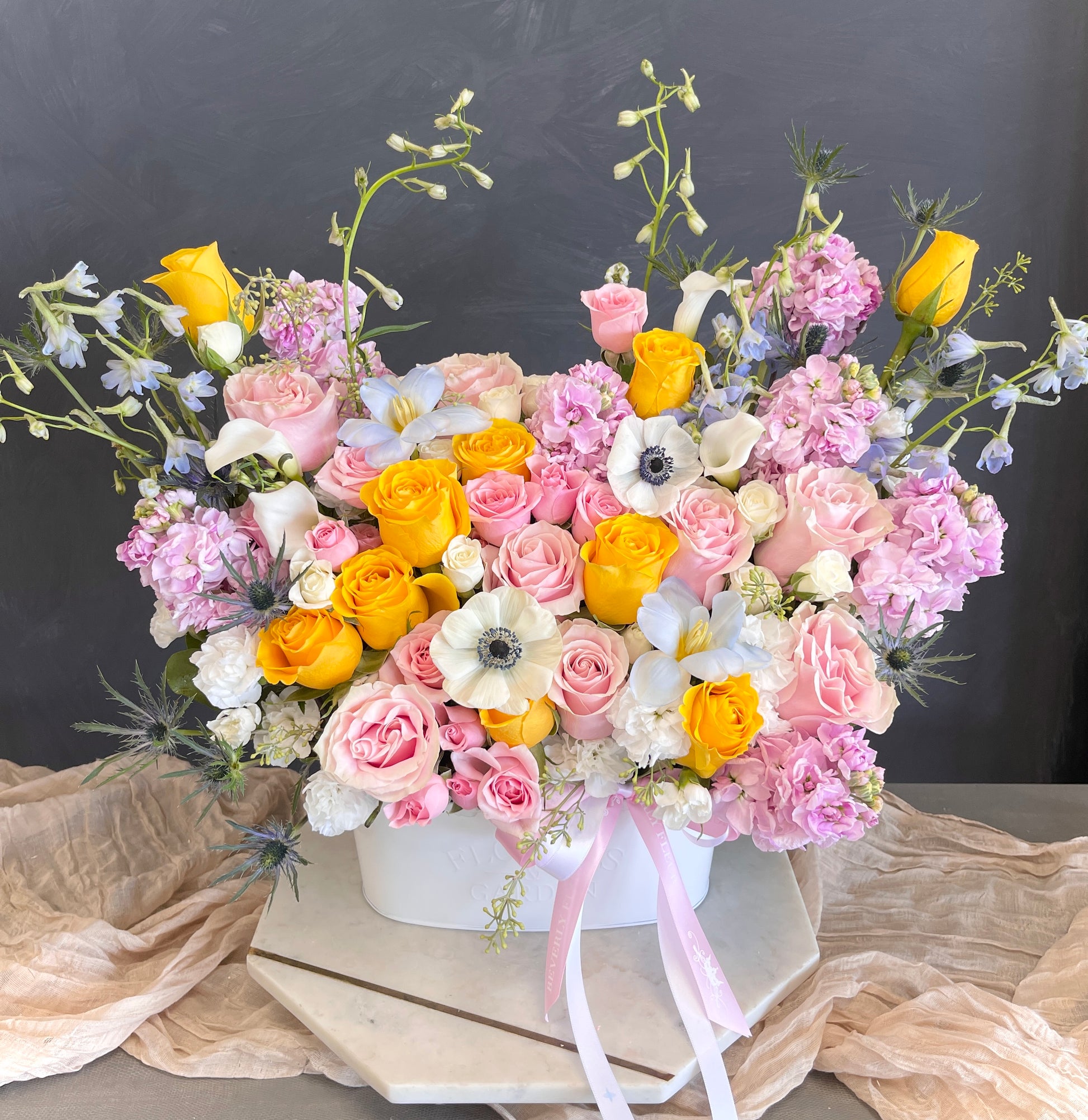 Although the actual flower arrangements may not precisely match the picture, its overall essence will. Occasionally, substitutions of flowers or containers happen due to weather, seasonality and market conditions which may affect availability. In this case, we will ensure that the style, theme and color scheme of your arrangement is preserved and will only substitute flowers of equal or higher value.