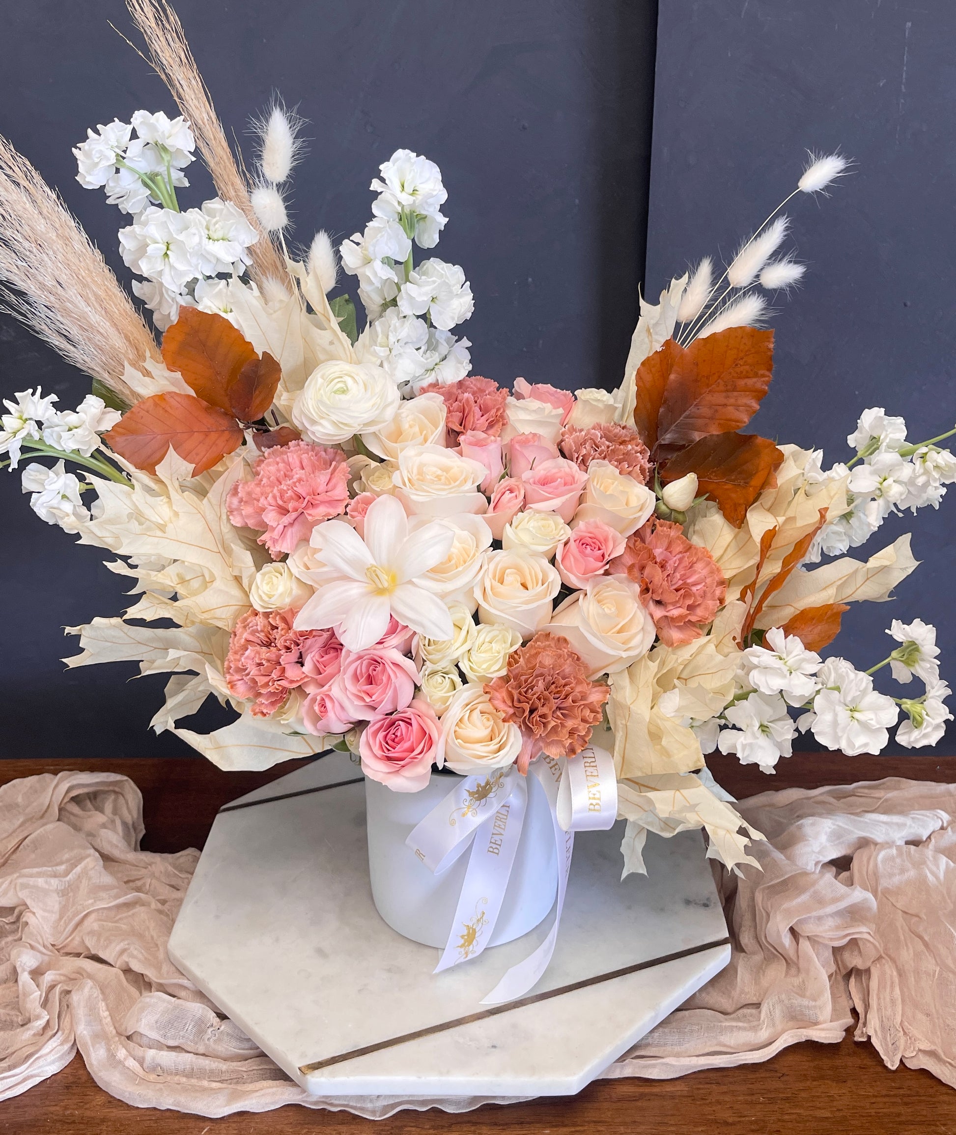 Although the actual flower arrangements may not precisely match the picture, its overall essence will. Occasionally, substitutions of flowers or containers happen due to weather, seasonality and market conditions which may affect availability. In this case, we will ensure that the style, theme and color scheme of your arrangement is preserved and will only substitute flowers of equal or higher value.