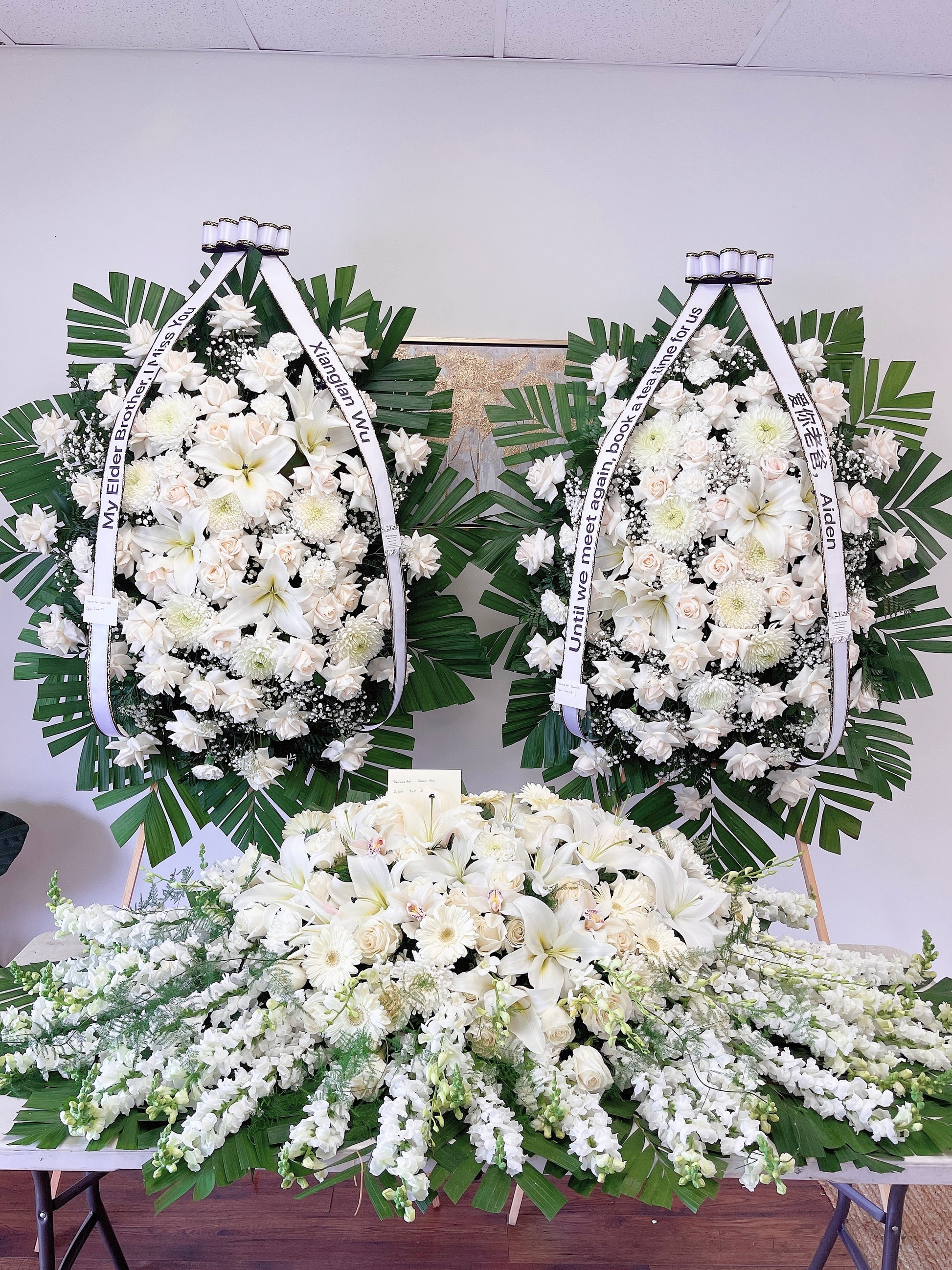 - One-sided full size casket flower arrangement ( this is a 5.5 to 6 feet long arrangement, so do not order if intended for half open casket)