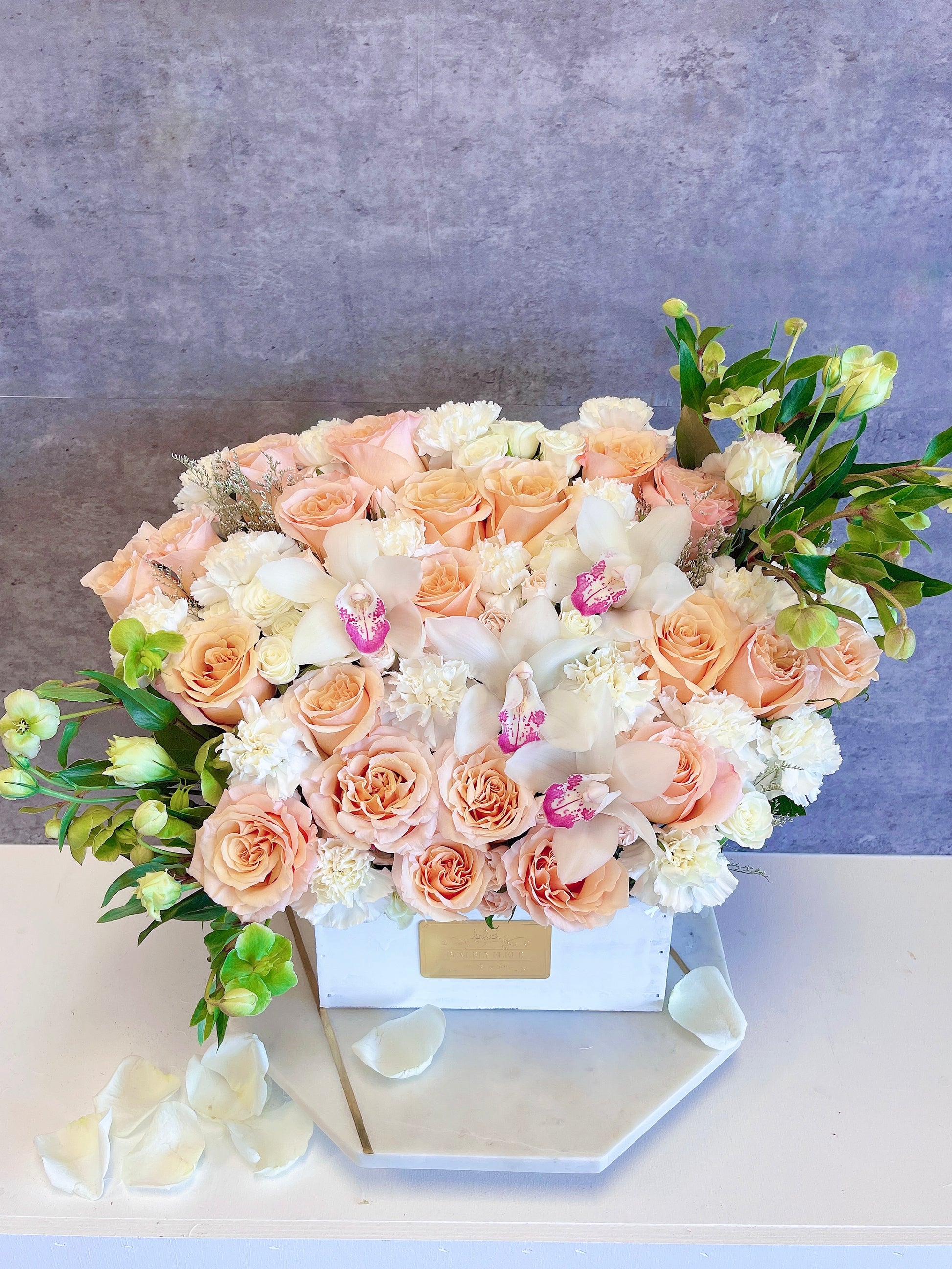 Although the actual flower arrangements may not precisely match the picture, its overall essence will. Occasionally, substitutions of flowers or containers happen due to weather, seasonality and market conditions which may affect availability. In this case, we will ensure that the style, theme and color scheme of your arrangement is preserved and will only substitute flowers of equal or higher value.