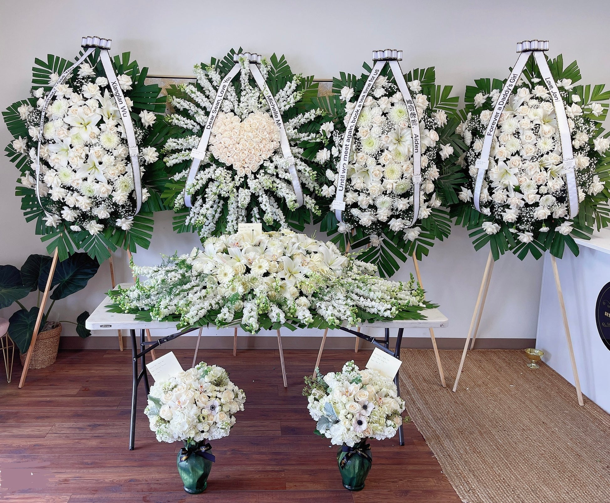 - One-sided full size casket flower arrangement ( this is a 5.5 to 6 feet long arrangement, so do not order if intended for half open casket)