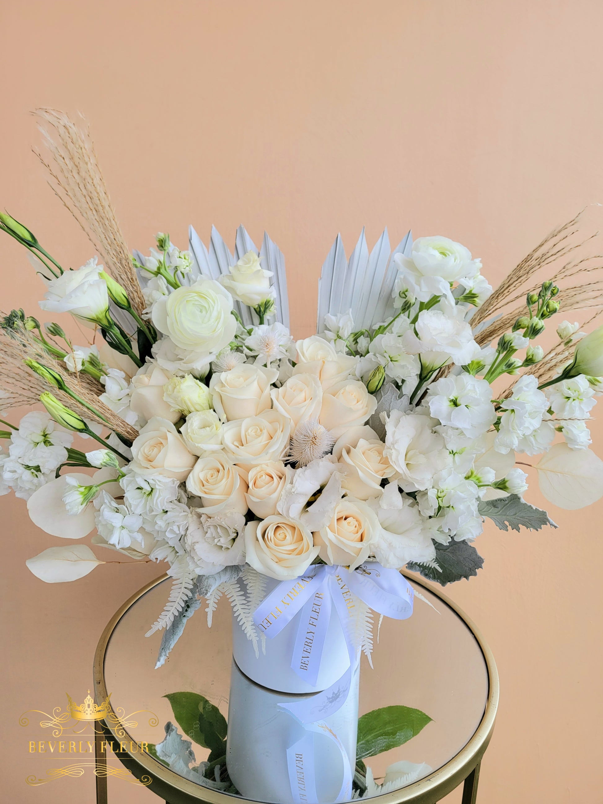 Although the actual flower arrangements may not precisely match the picture, its overall essence will. Occasionally, substitutions of flowers or containers happen due to weather, seasonality and market conditions which may affect availability. In this case, we will ensure that the style, theme and color scheme of your arrangement is preserved and will only substitute flowers of equal or higher value.