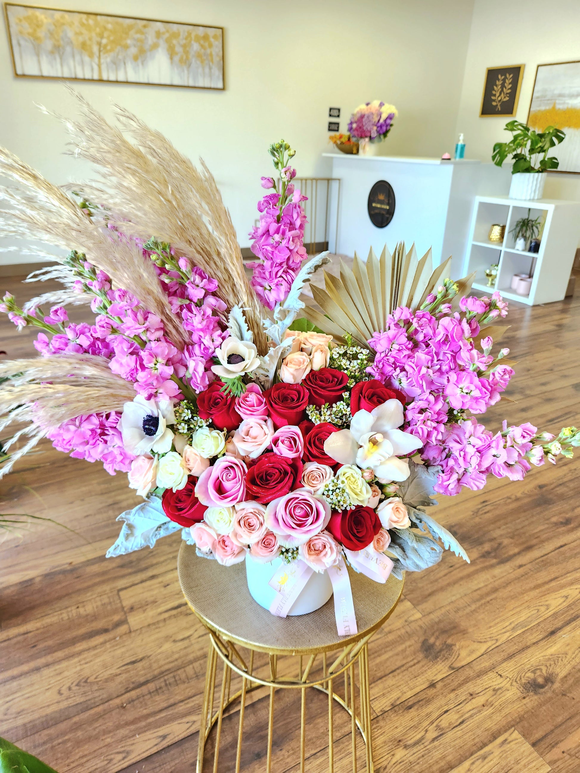 Although the actual flower arrangements may not precisely match the picture, its overall essence will. Occasionally, substitutions of flowers or containers happen due to weather, seasonality and market conditions which may affect availability. In this case, we will ensure that the style, theme and color scheme of your arrangement is preserved and will only substitute flowers of equal or higher value.
