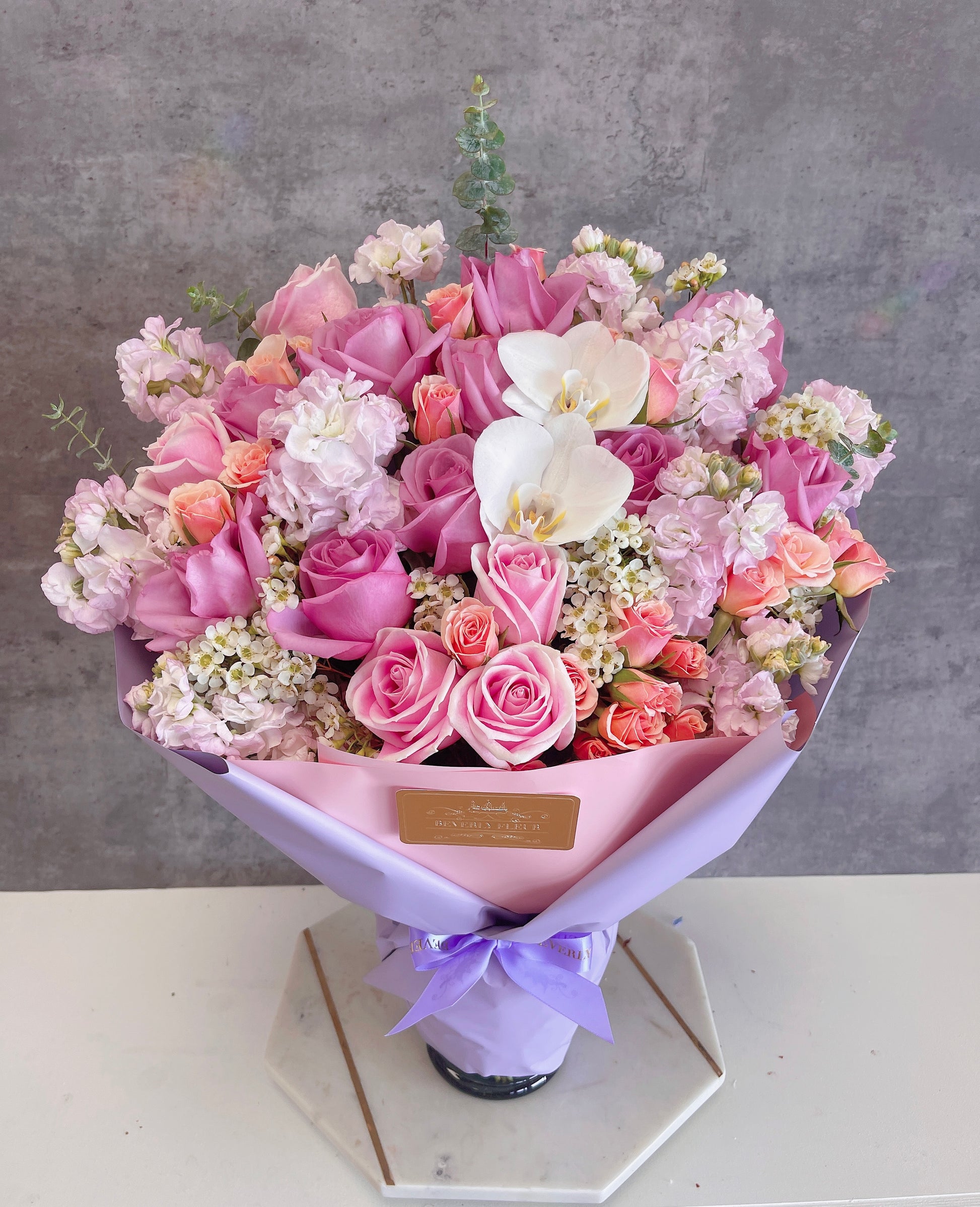 These fresh flowers are arranged in a vase and wrapped with Beverly Fleur deluxe wrapping to enhance its aesthetic look. Send this arrangement to your loved ones and they'll be transfixed by this dazzling display of blooms.