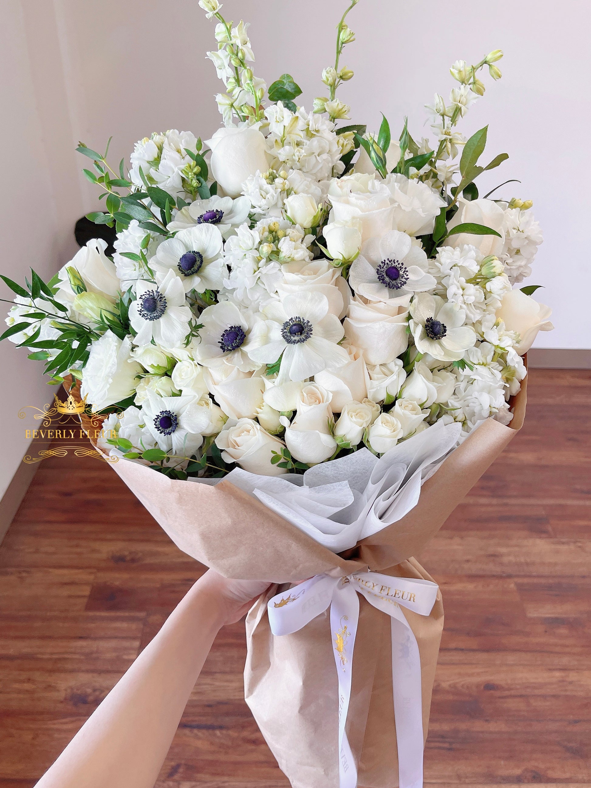 - Fresh flowers gift-wrap bouquet. Kraft wrapping finish, no container