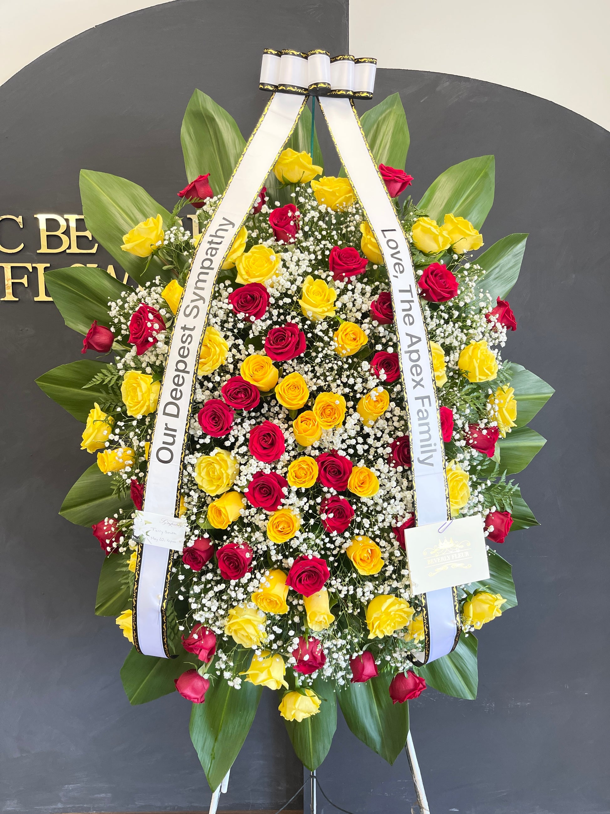Celebrate a beautiful life with a truly heartfelt gesture. Our elegant heart wreath is arranged with a gathering of roses, baby's breath. A beautiful floral display for the services, it’s a touching way to honor the memory of a loved one while expressing your deepest condolences.