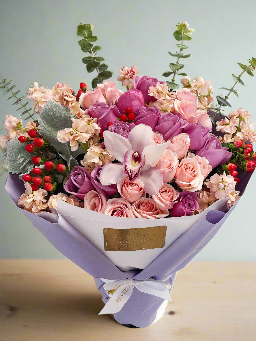These fresh flowers are arranged in a vase and wrapped with Beverly Fleur deluxe wrapping to enhance its aesthetic look. Send this arrangement to your loved ones and they'll be transfixed by this dazzling display of blooms.