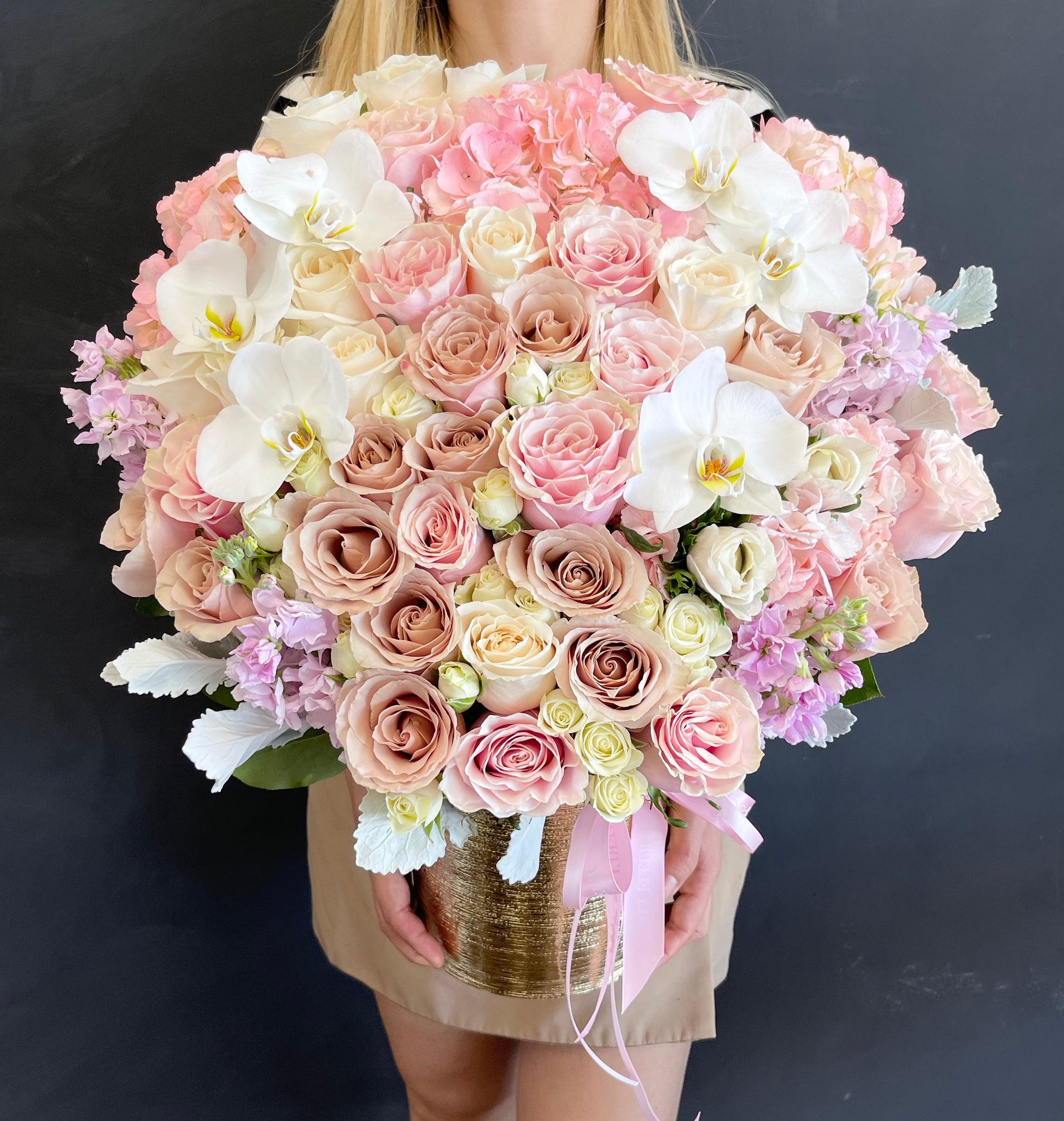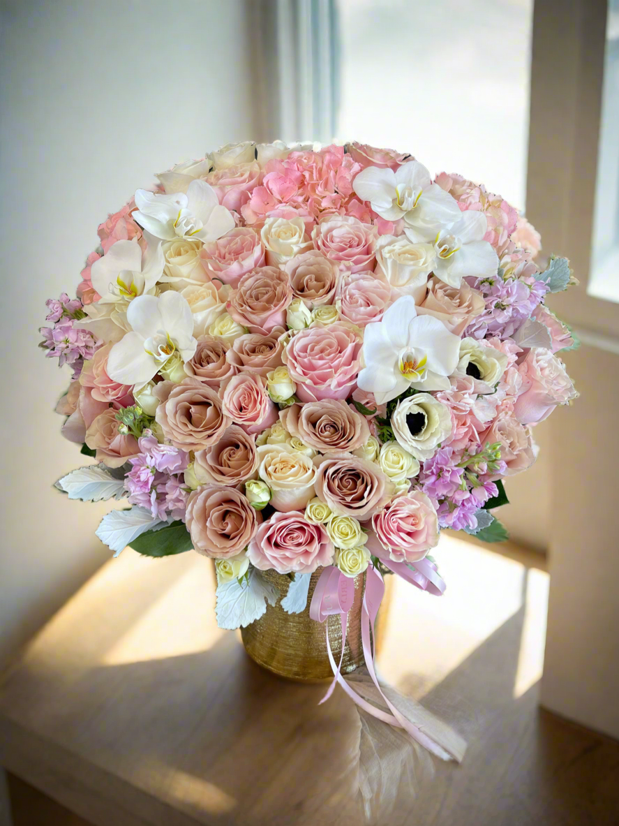 Although the actual flower arrangements may not precisely match the picture, its overall essence will. Occasionally, substitutions of flowers or containers happen due to weather, seasonality and market conditions which may affect availability. In this case, we will ensure that the style, theme and color scheme of your arrangement is preserved and will only substitute flowers of equal or higher value.