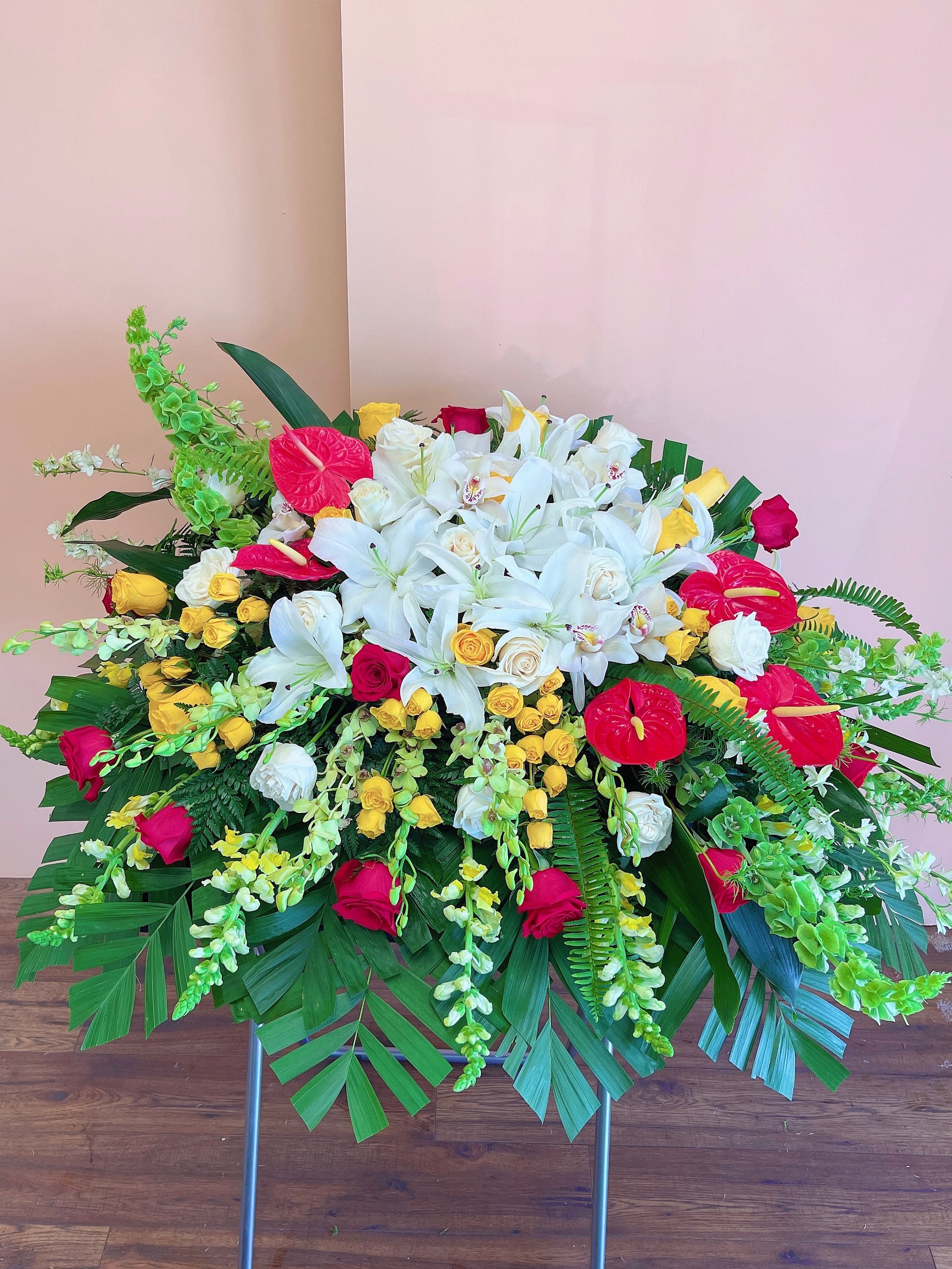 Although the actual flower arrangements may not precisely match the picture, its overall essence will. Occasionally, substitutions of flowers or containers happen due to weather, seasonality and market conditions which may affect availability. In this case, we will ensure that the style, theme and color scheme of your arrangement is preserved and will only substitute flowers of equal or higher value.