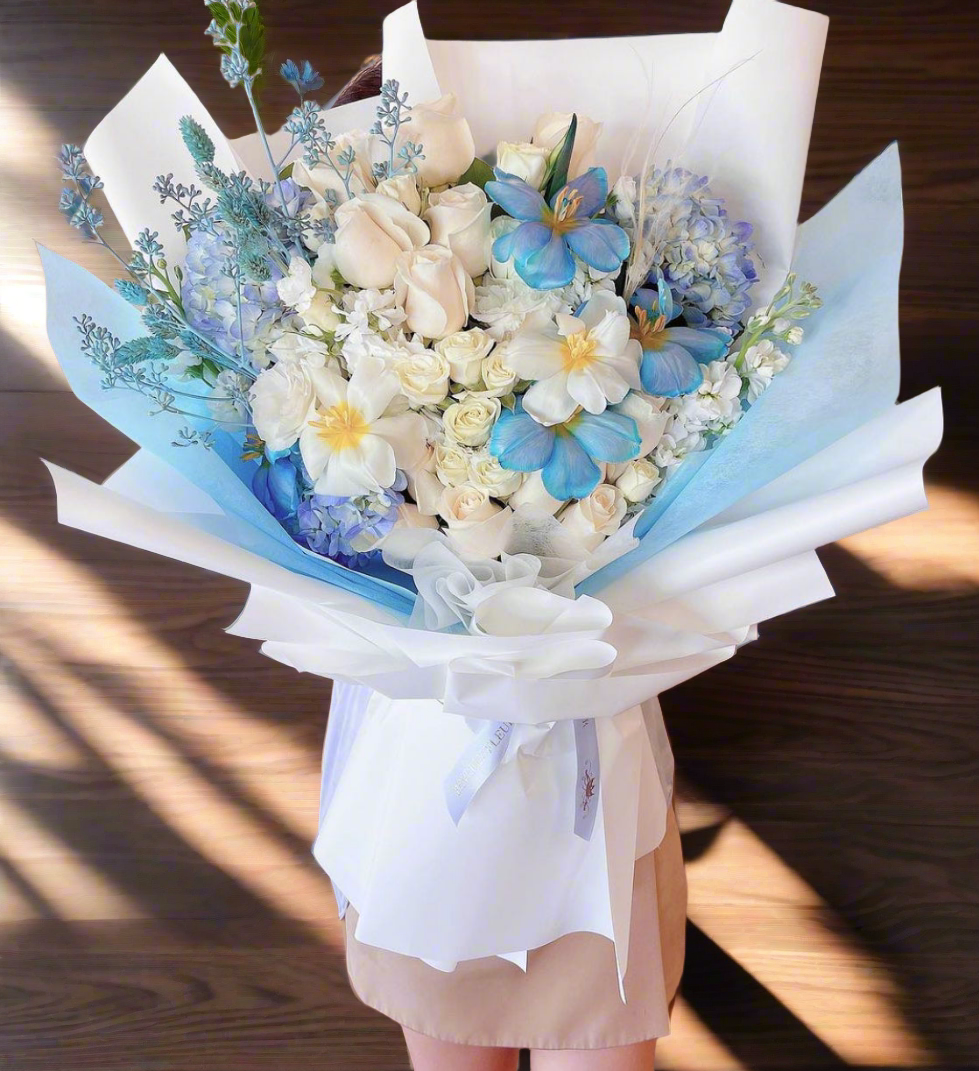 - Fresh flowers gift-wrap bouquet. Waterproof wrapping finish, no container