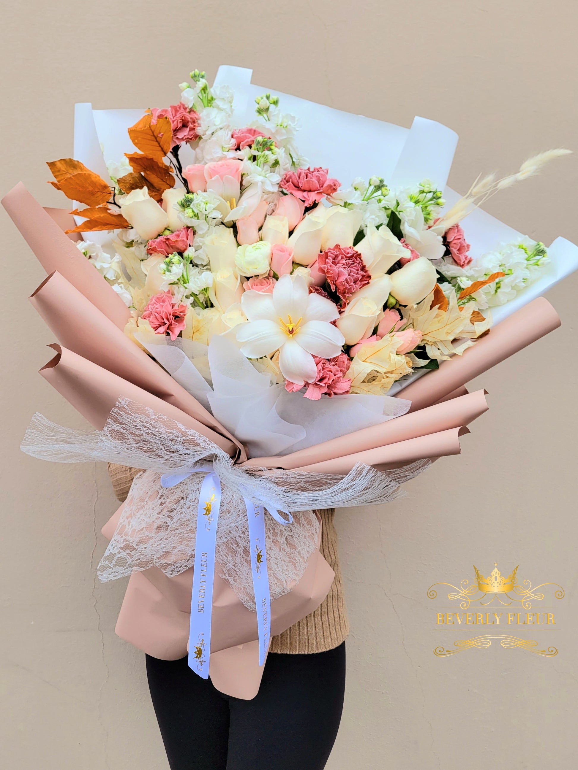- Fresh flowers gift-wrap bouquet Waterproof wrapping finish, no container
