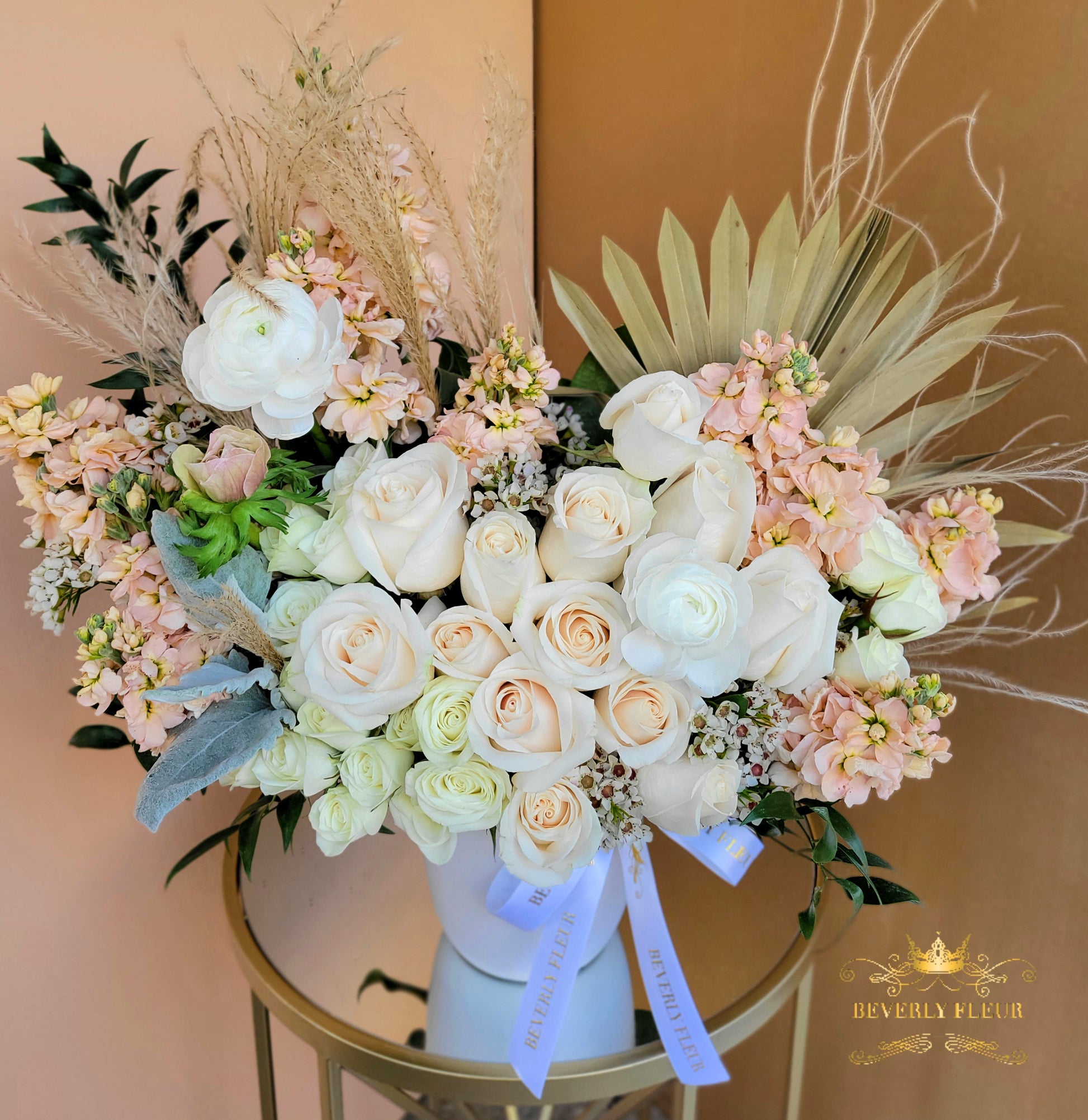 Although the actual flower arrangements may not precisely match the picture, its overall essence will. Occasionally, substitutions of flowers or containers happen due to weather, seasonality and market conditions which may affect availability. In this case, we will ensure that the style, theme and color scheme of your arrangement is preserved and will only substitute flowers of equal or higher value.