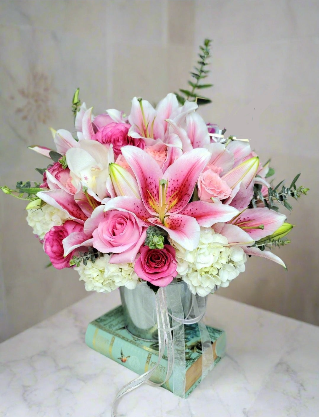 - Fresh flowers ( lilies may come in bud form and will fully open in a few days)
