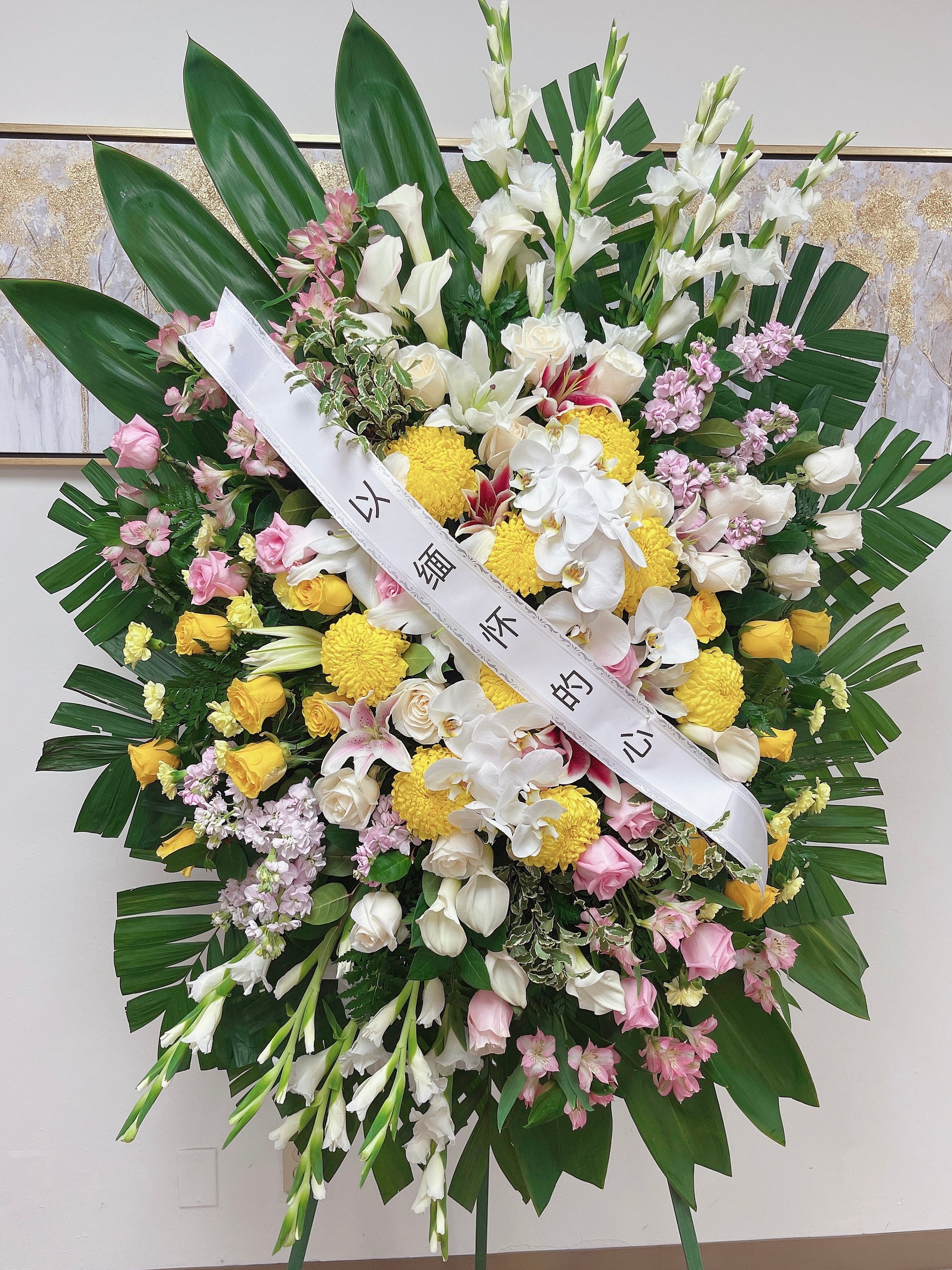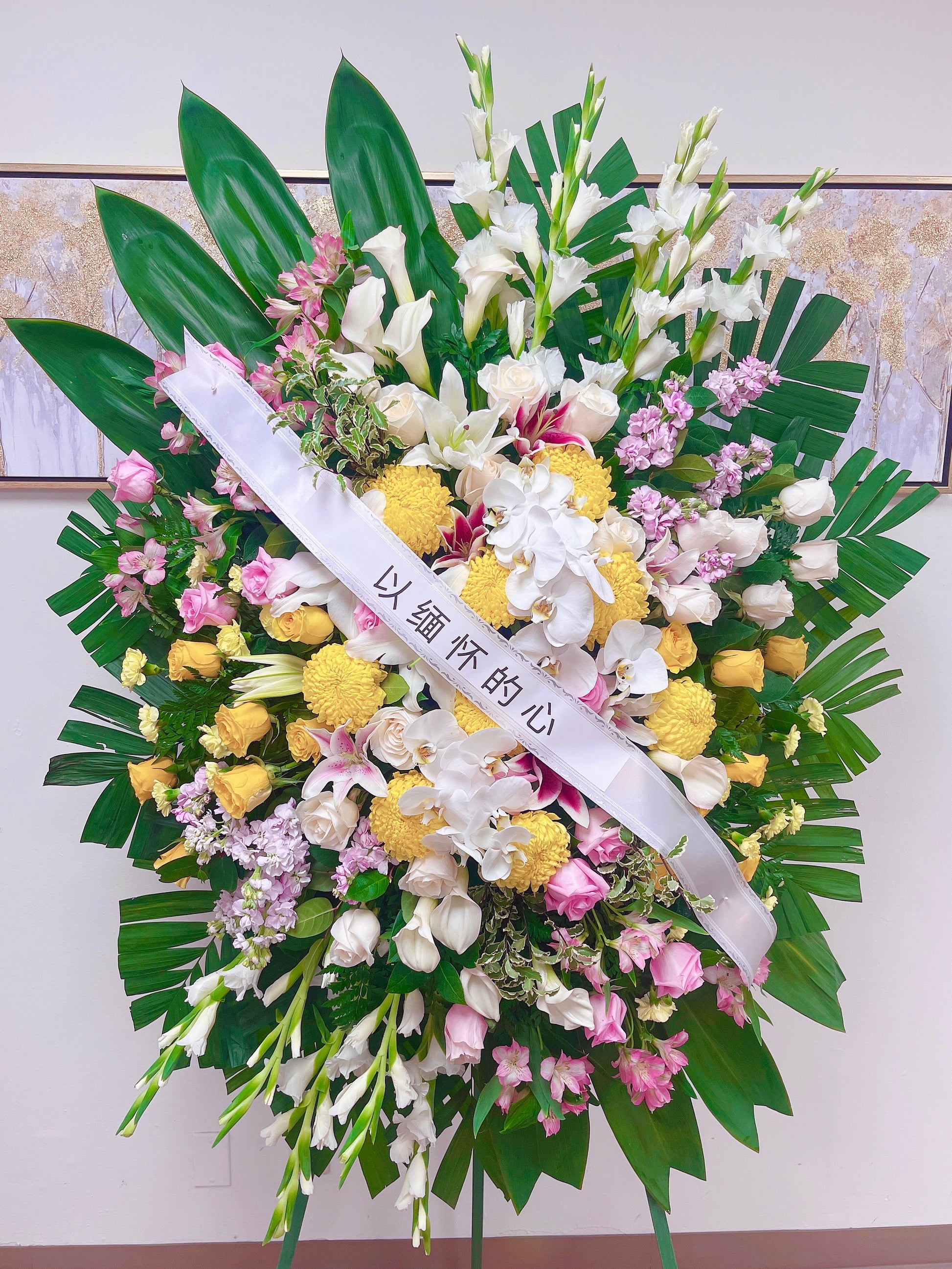 Celebrate a beautiful life with a truly heartfelt gesture. A traditional floral display for the services, it’s a touching way to honor the memory of a loved one while expressing your deepest condolences.