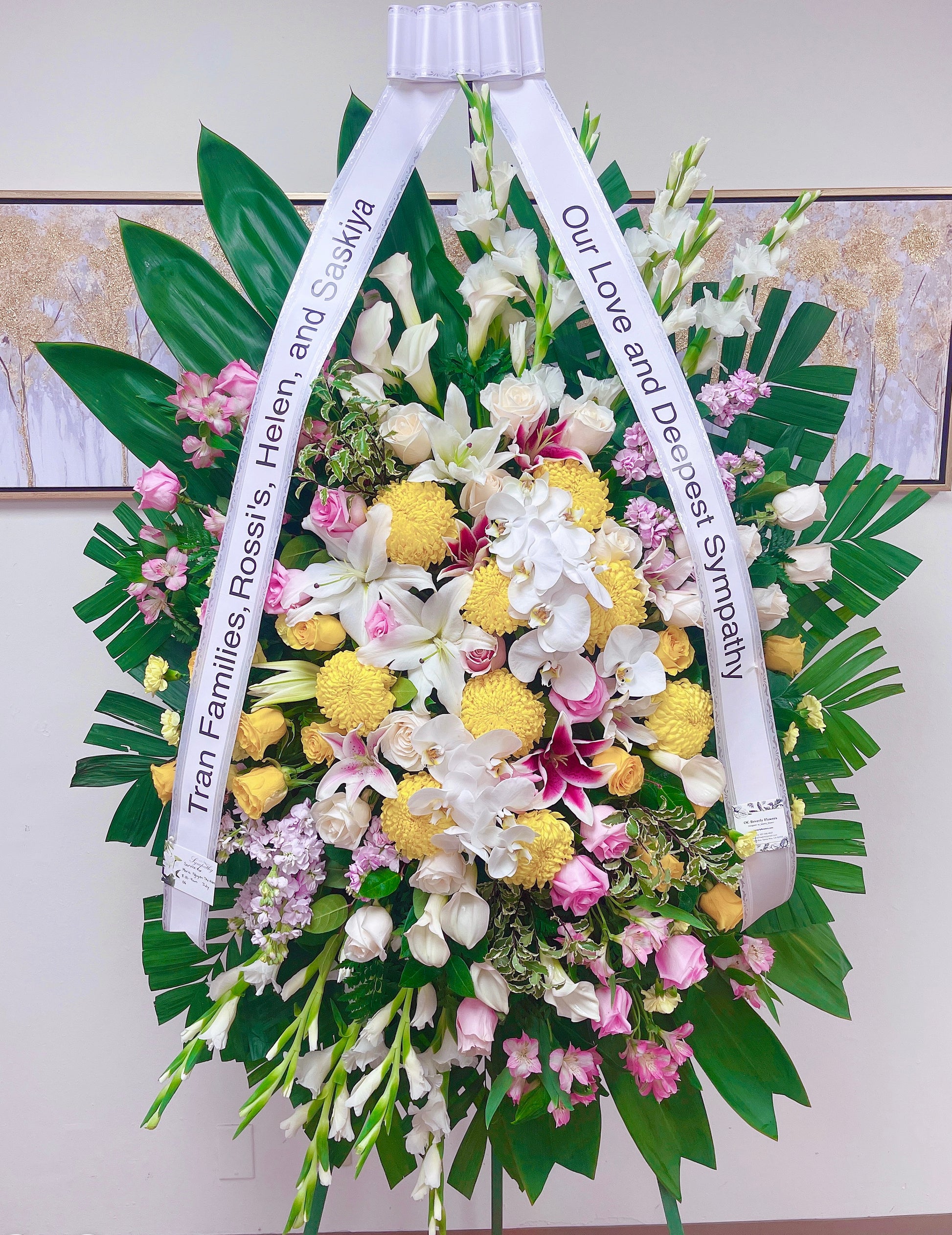 - Large arrangement measures approximately 56"H x 46"W without stand