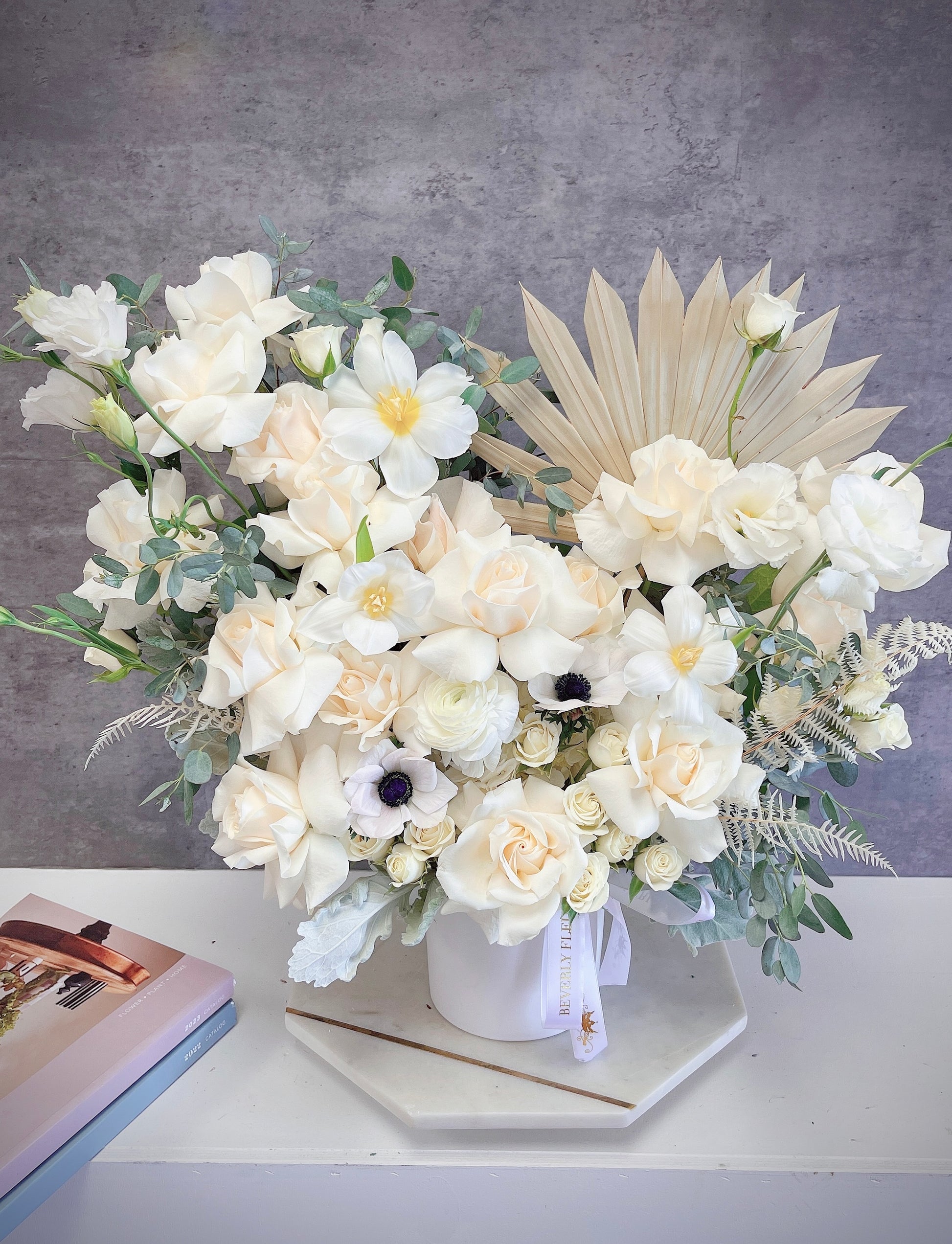 In some cases, the pictures may represent an overall color scheme, shape or look and include a one-of-a-kind vase or wrapping paper which cannot be exactly replicated.