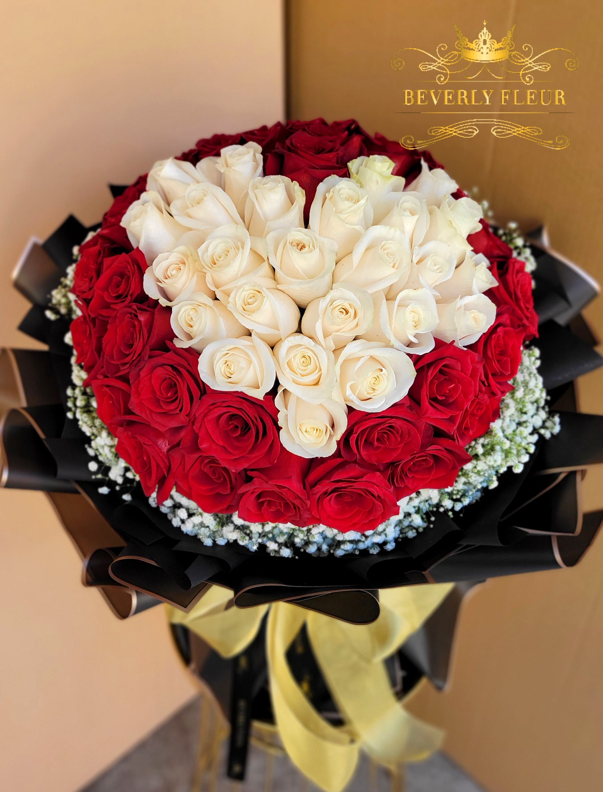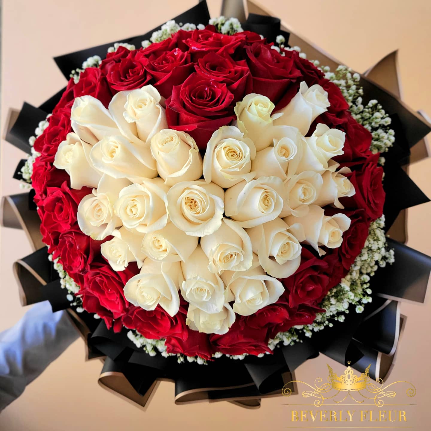 - Fresh flowers gift-wrap bouquet ( 60 to 65 roses). Waterproof wrapping finish, no container