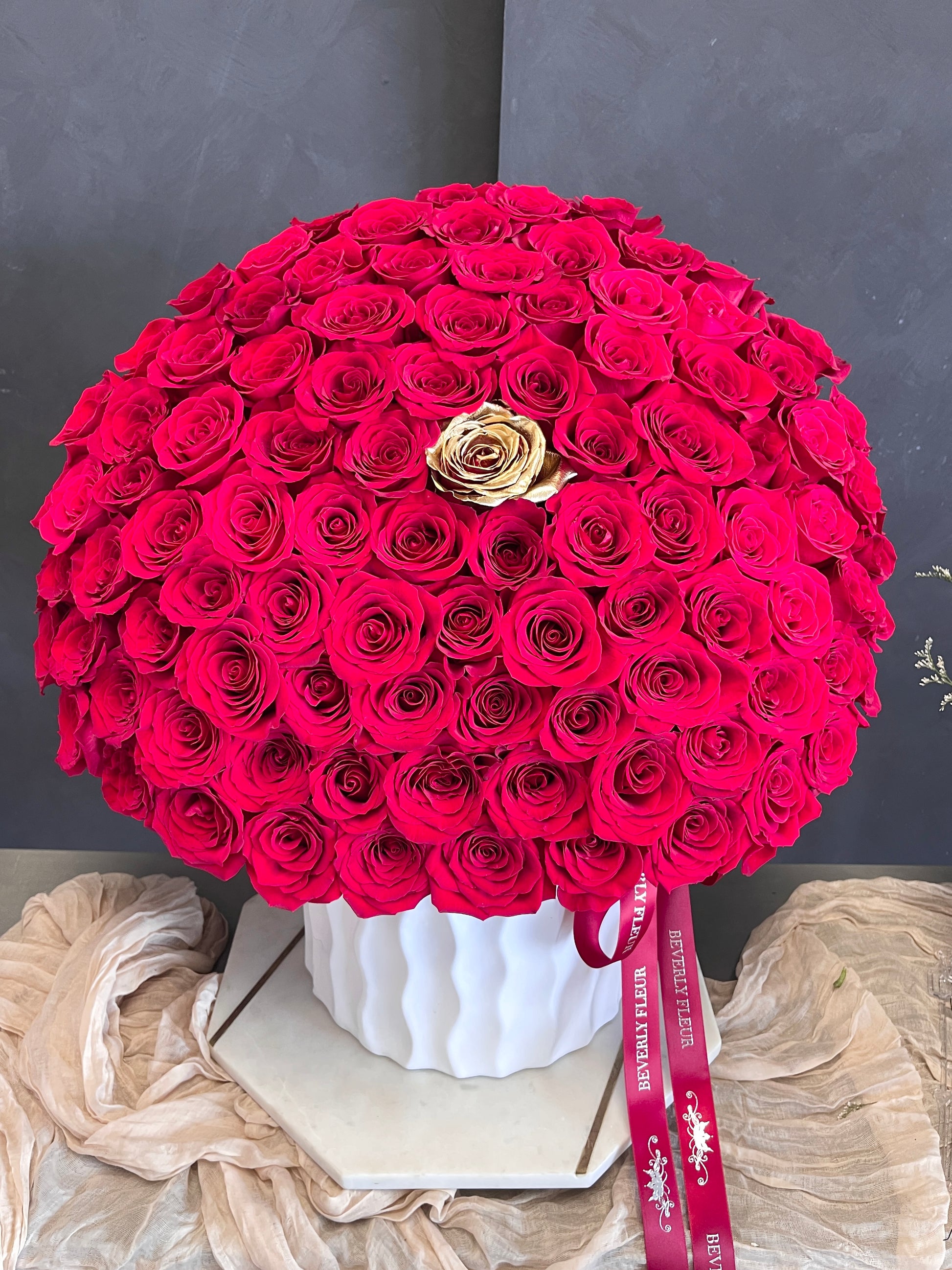 - Fresh flowers (Note: Gold roses are spray painted, not nature color)