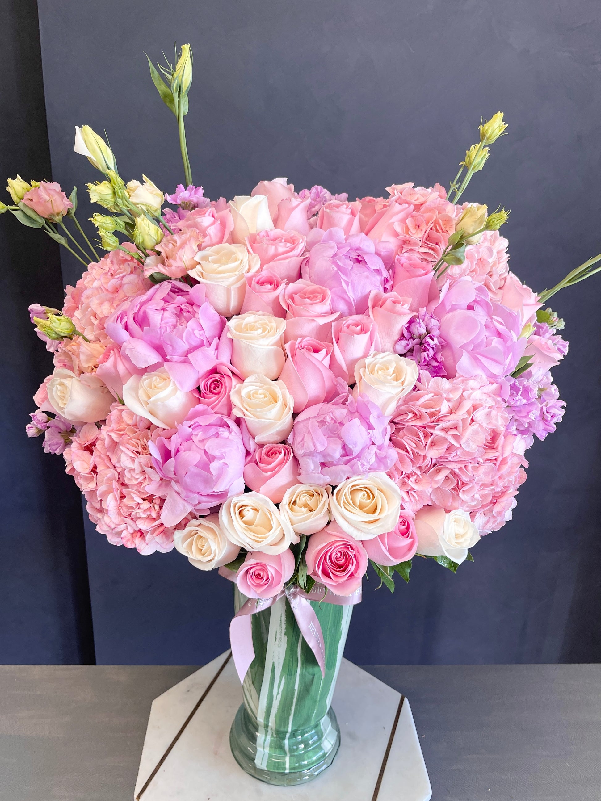 Although the actual flower arrangements may not precisely match the picture, its overall essence will. Occasionally, substitutions of flowers or containers happen due to weather, seasonality and market conditions which may affect availability. In this case, we will ensure that the style, theme and color scheme of your arrangement is preserved and will only substitute flowers of equal or higher value.