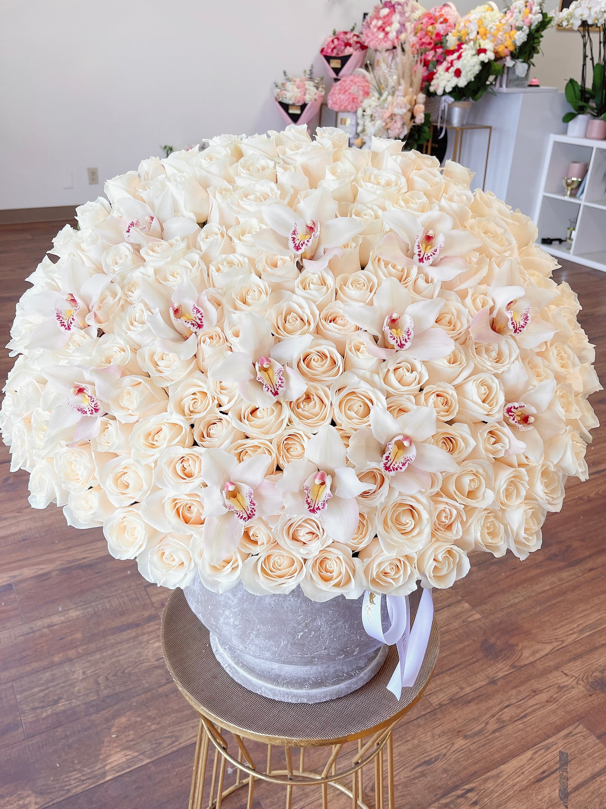 Although the actual flower arrangements may not precisely match the picture, its overall essence will. Occasionally, substitutions of flowers or containers happen due to weather, seasonality and market conditions which may affect availability. In this case, we will ensure that the style, theme and color scheme of your arrangement is preserved and will only substitute flowers of equal or higher value.