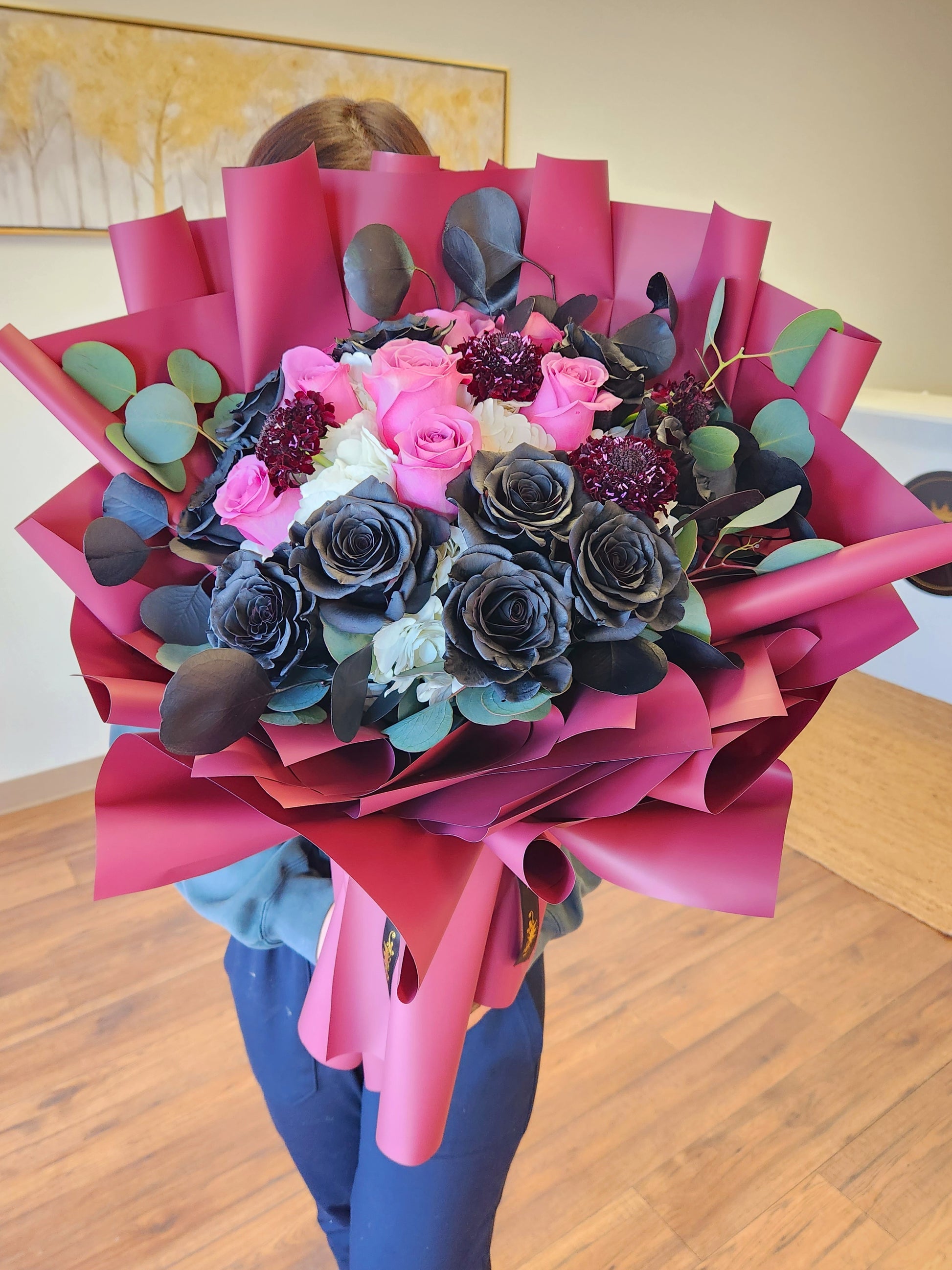 In some cases, the pictures may represent an overall color scheme, shape or look and include a one-of-a-kind vase or wrapping paper which cannot be exactly replicated.