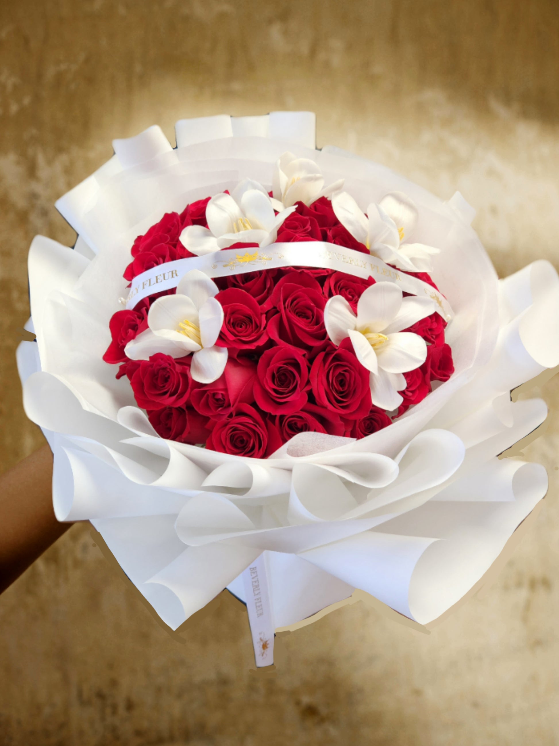 - 2 dz Fresh roses flowers gift-wrap bouquet. Waterproof wrapping finish, no container