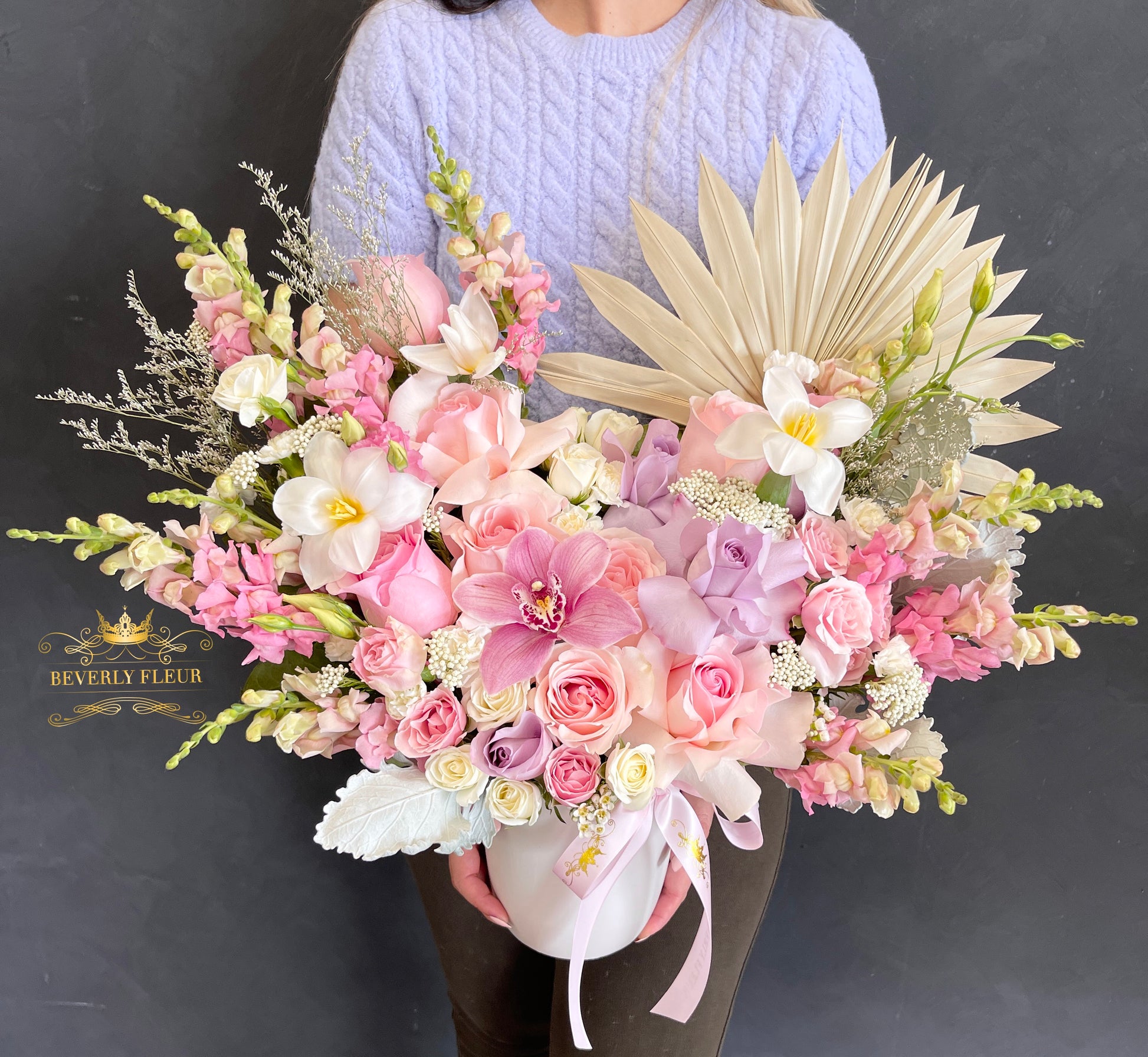 Although the actual flower arrangements may not precisely match the picture, its overall essence will. Occasionally, substitutions of flowers or containers happen due to weather, seasonality and market conditions which may affect availability. In this case, we will ensure that the style, theme and color scheme of your arrangement is preserved and will only substitute flowers of equal or higher value.