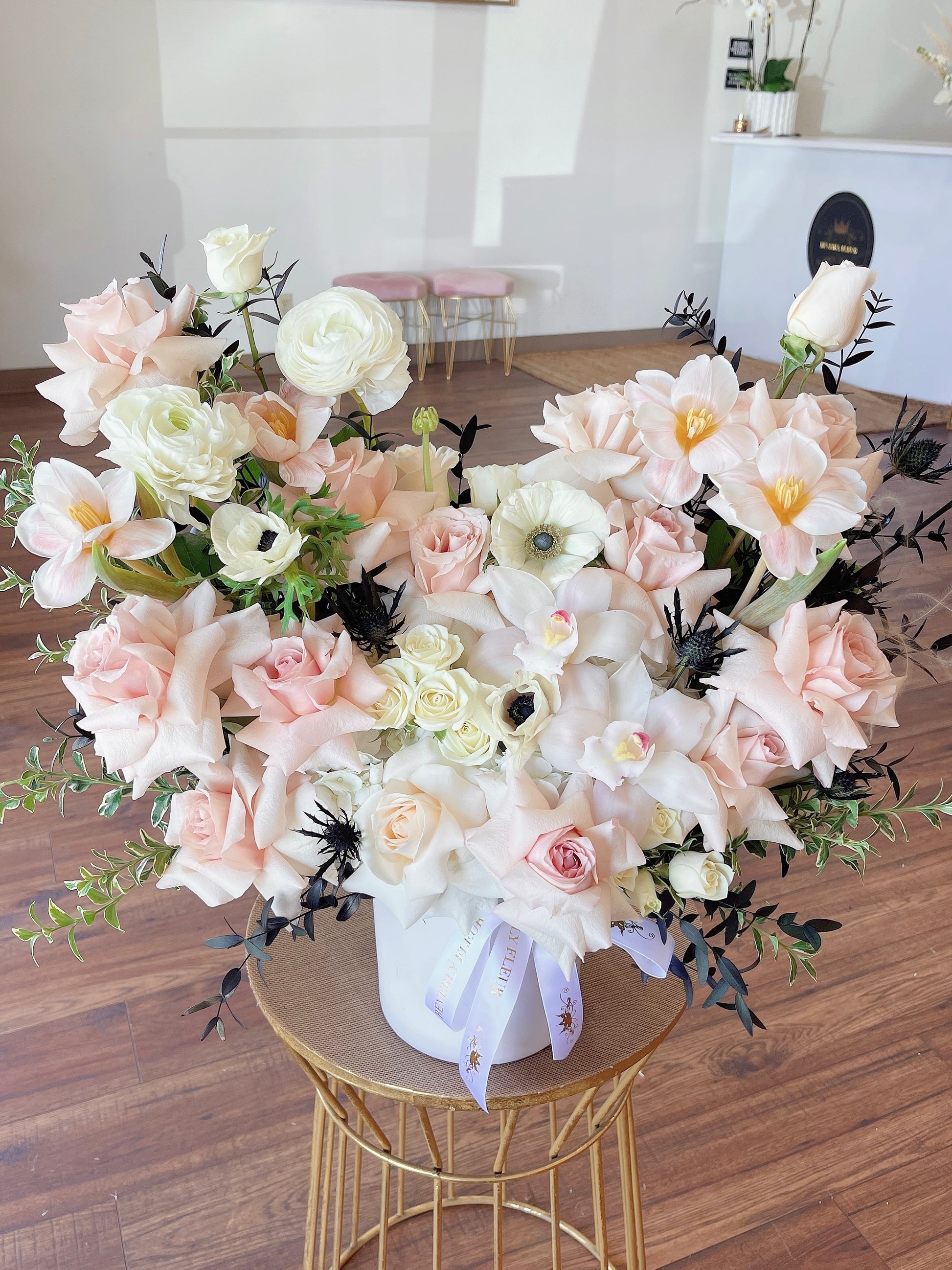 Although the actual flower arrangements may not precisely match the picture, its overall essence will. Occasionally, substitutions of flowers or containers happen due to weather, seasonality and market conditions which may affect availability. In this case, we will ensure that the style, theme and color scheme of your arrangement is preserved and will only substitute flowers of equal or higher value.
