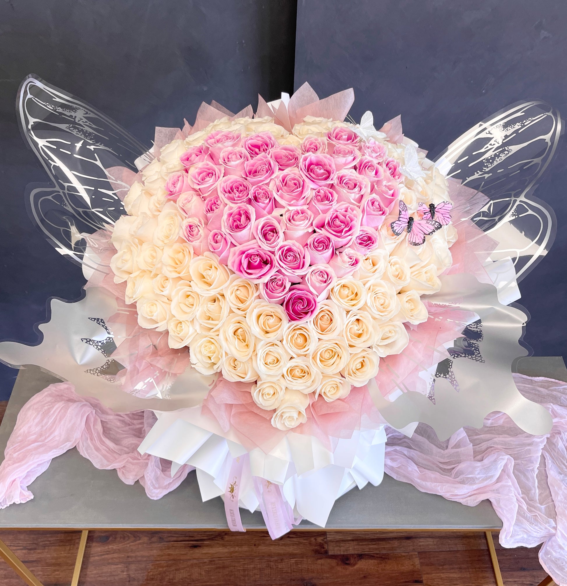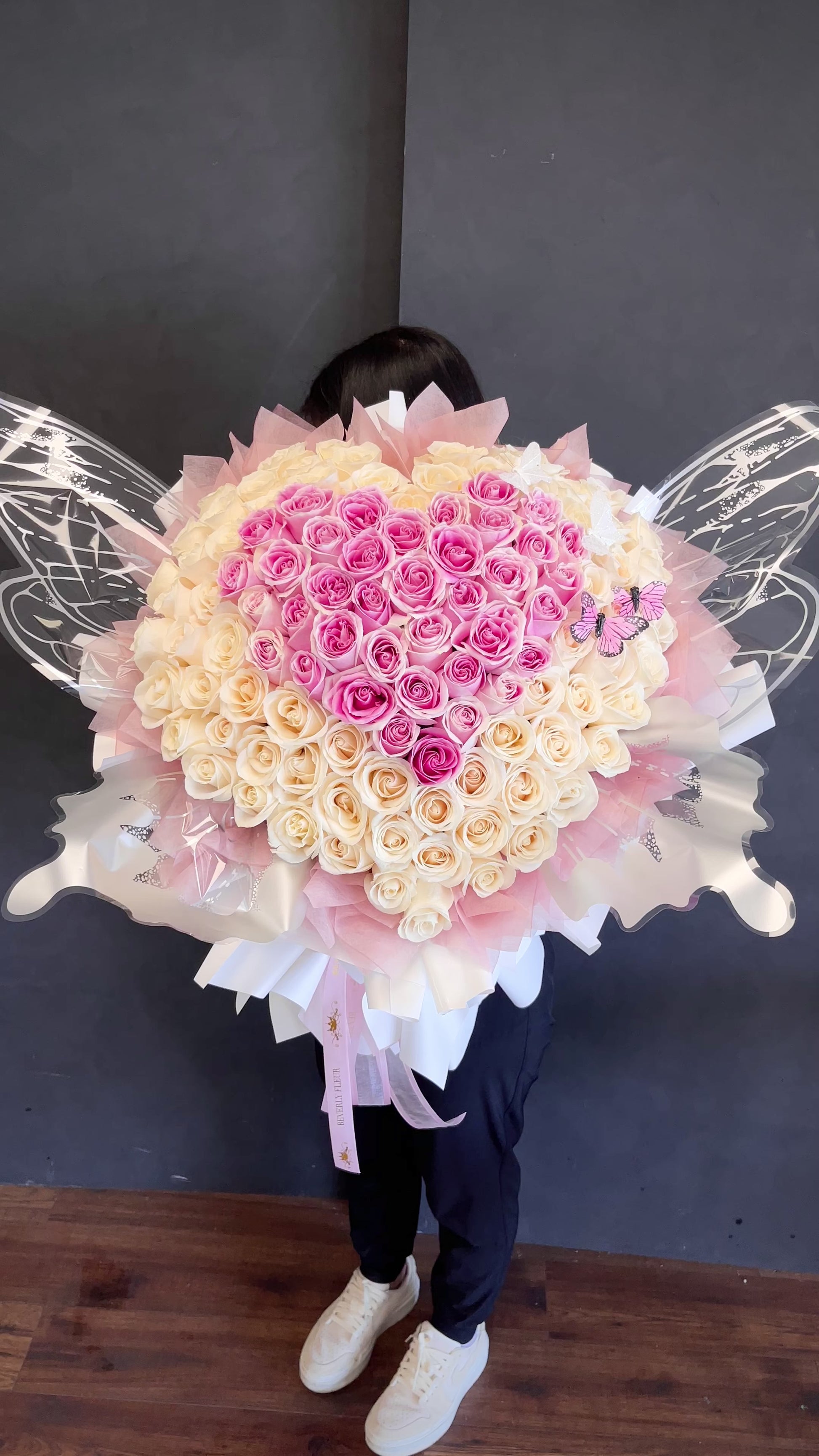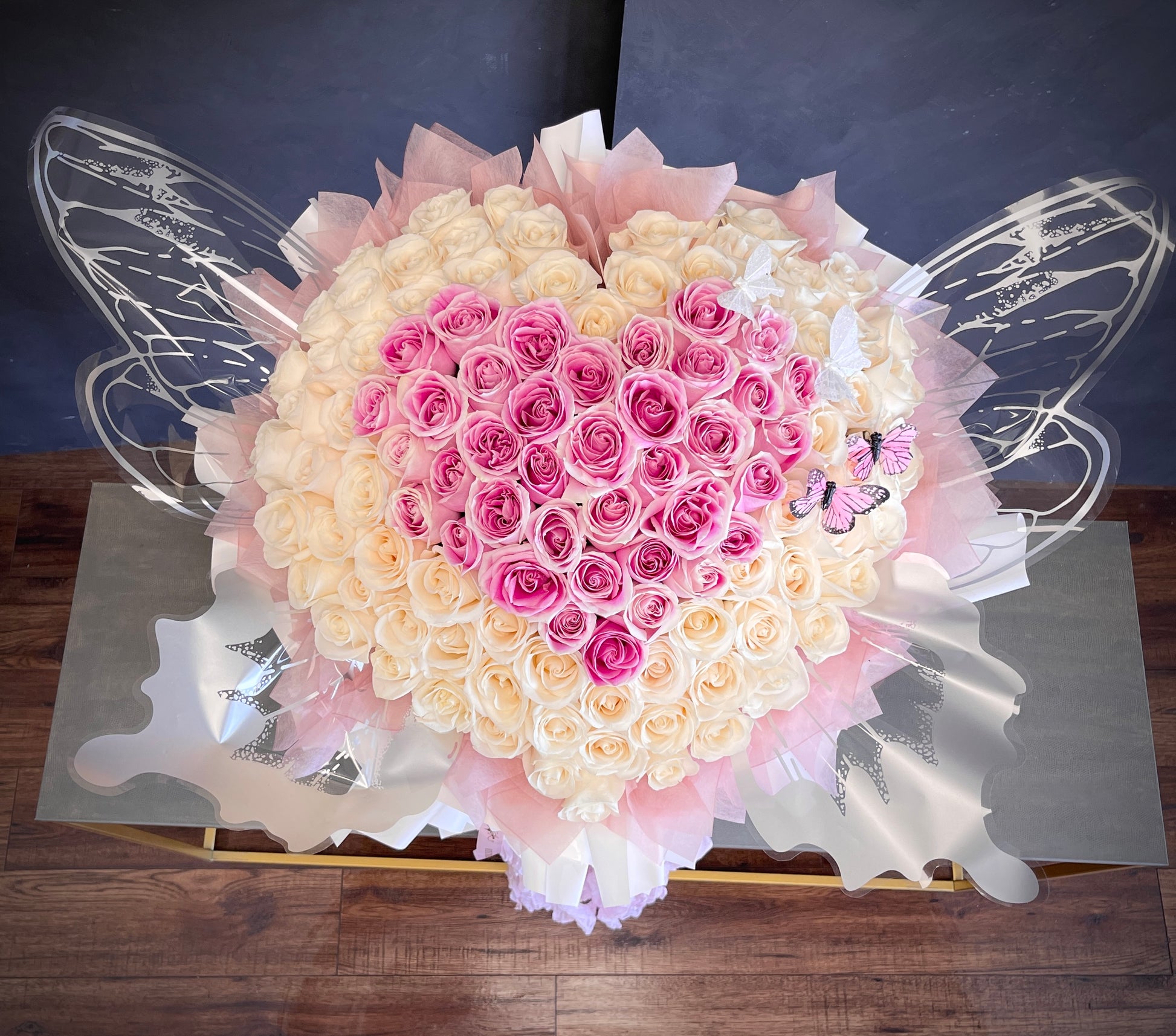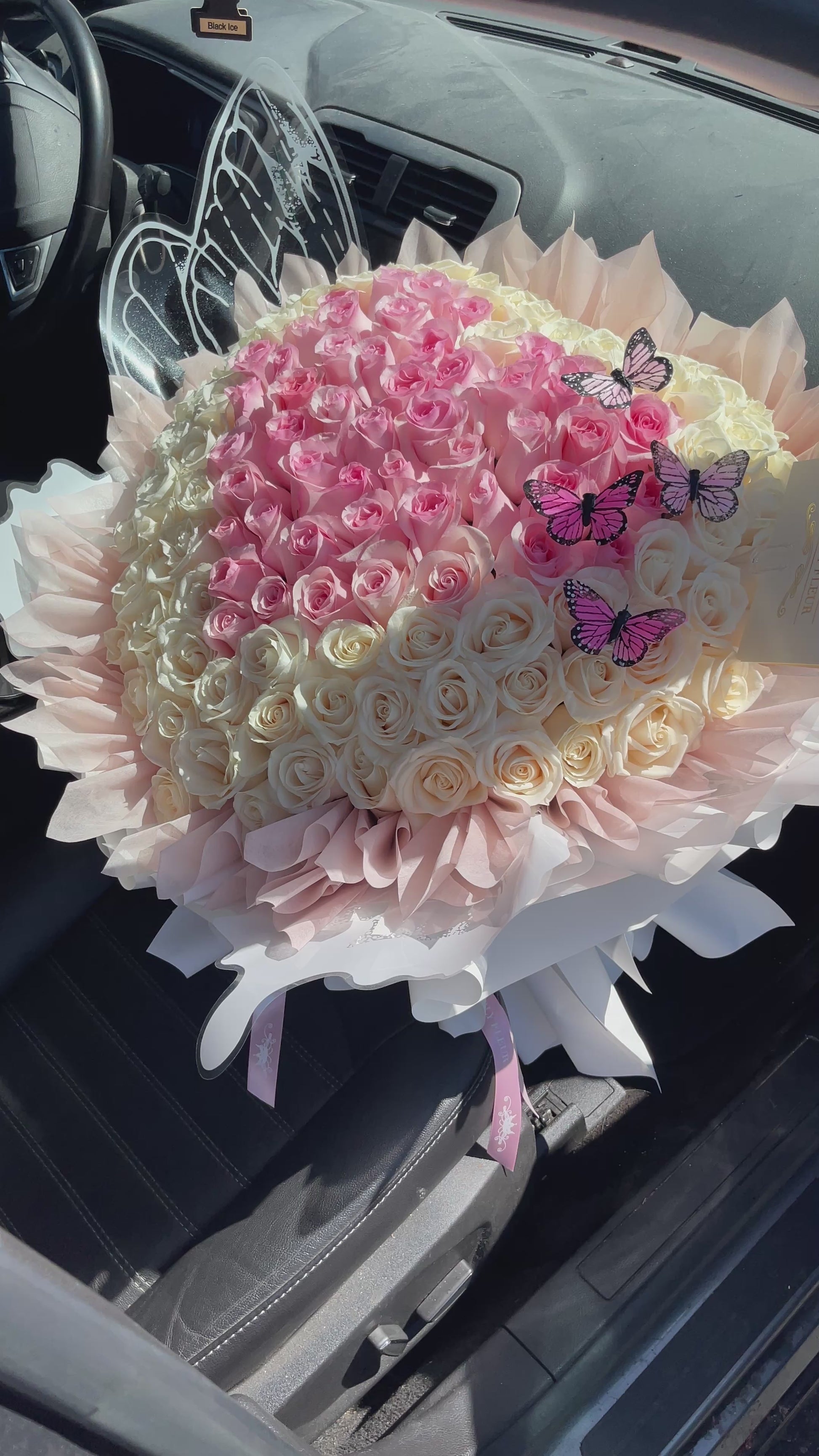 - 125 Roses gift-wrap bouquet. This bouquet has its own Water Source no need for extra container .