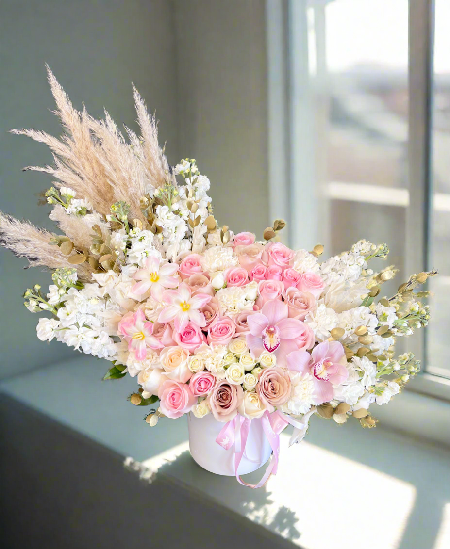Although the actual flower arrangements may not precisely match the picture, its overall essence will. Occasionally, substitutions of flowers or containers happen due to weather, seasonality and market conditions which may affect availability. In this case, we will ensure that the style, theme and color scheme of your arrangement is preserved and will only substitute flowers of equal or higher value.