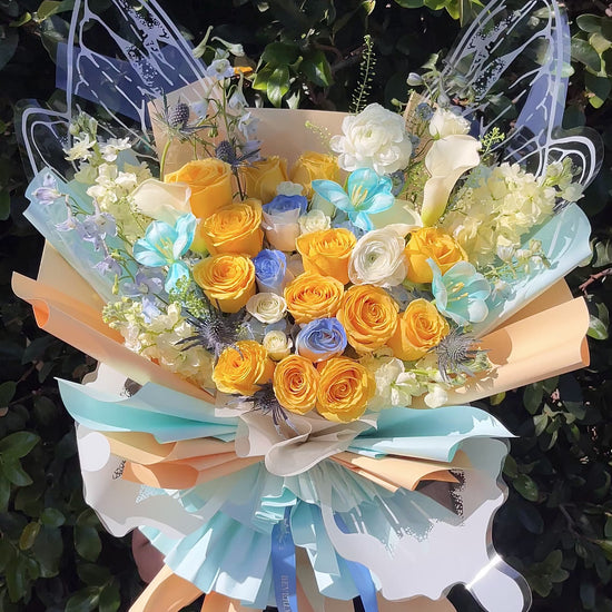 Although the actual flower arrangements may not precisely match the picture, its overall essence will. Occasionally, substitutions of flowers or containers happen due to weather, seasonality and market conditions which may affect availability. In this case, we will ensure that the style, theme and color scheme of your arrangement is preserved and will only substitute flowers of equal or higher value.