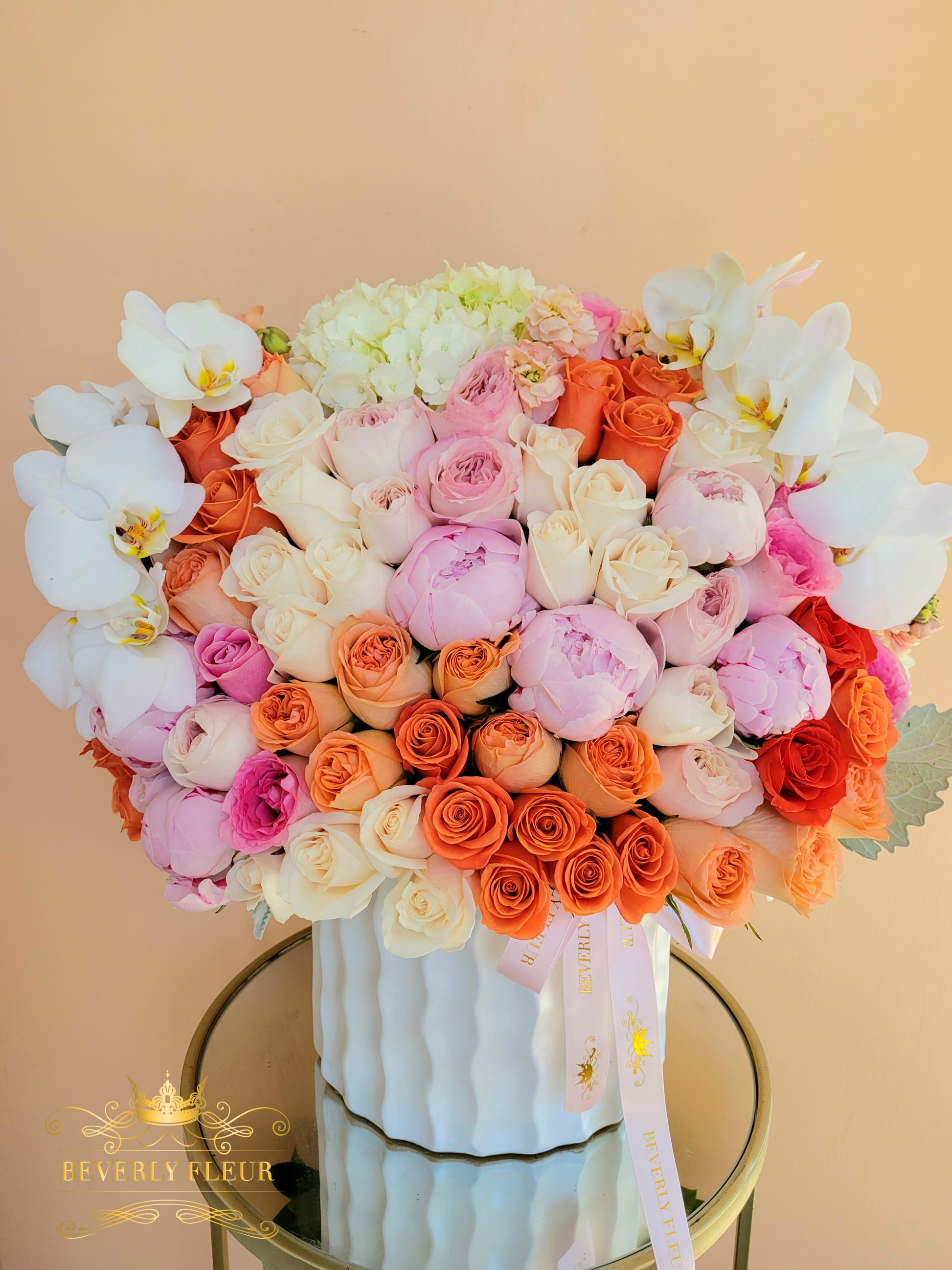Although the actual flower arrangements may not precisely match the picture, its overall essence will. Occasionally, substitutions of flowers or containers happen due to weather, seasonality and market conditions which may affect availability. In this case, we will ensure that the style, theme and color scheme of your arrangement is preserved and will only substitute flowers of equal or higher value.
