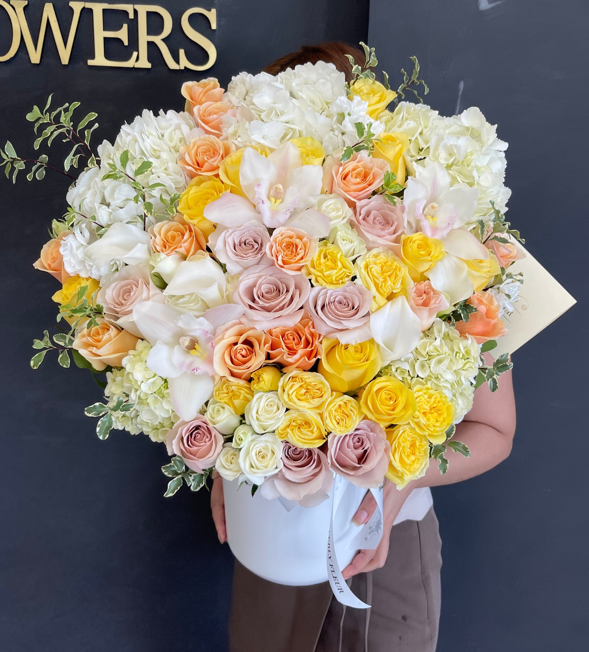 Although the actual flower arrangements may not precisely match the picture, its overall essence will. Occasionally, substitutions of flowers or containers happen due to weather, seasonality and market conditions which may affect availability. In this case, we will ensure that the style, theme and color scheme of your arrangement is preserved and will only substitute flowers of equal or higher value.